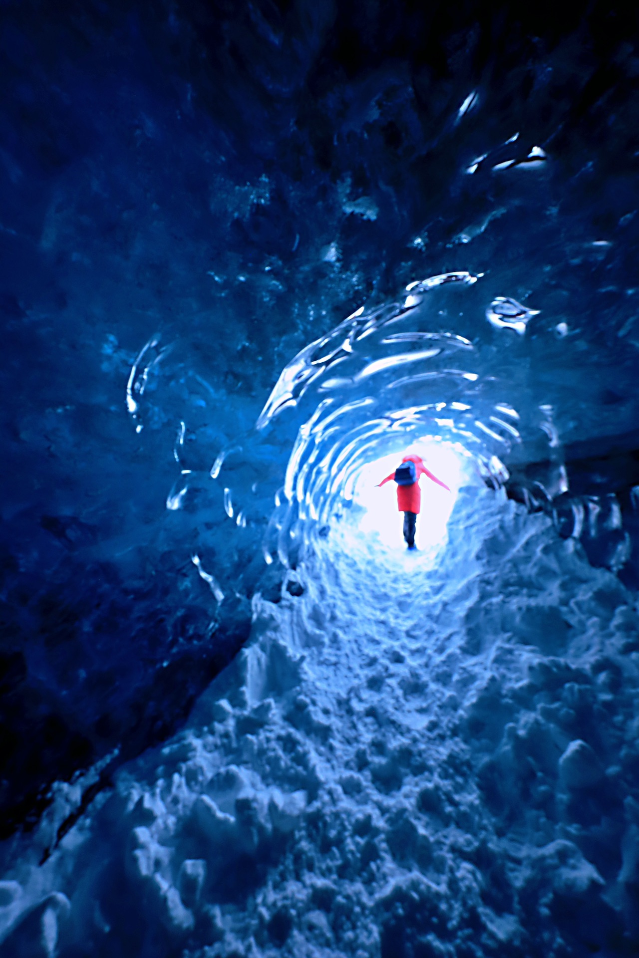 今天早晨起来,外面开始飘雪。果然今天的交通很艰难,昨天司机的预测是完全正确的。我们吃过早餐后,奔赴瓦特纳冰川,准备探寻蓝冰洞。这里又要提一句,晕车的小伙伴,慎重啊。冰川上是看不到路的,白皑皑的雪下可能就是一个坑,也可能是个大石头。整条路延绵起伏,颠得厉害。纯靠司机的经验。老闺蜜这次真是晕得够呛,难受得不行。回到蓝冰洞上来说,蓝冰洞比我想象的要小(当然也可能是我们去的小,大的不知在何方)。蓝冰洞只有冬天能见,夏天就化了。所以不会遇到相同的蓝冰洞。这天我觉得我的相机对焦出了问题,拍出来的都是糊的,我想不会是冻坏了吧???感觉不可能。等我从蓝冰洞出来,我才意识到,是我昨天晚上拍极光调成了手动对焦无限远,忘记调回自动对焦了。果然,冻坏的不是相机,而是我的脑子。很遗憾,没能在蓝冰洞拍上美照。当然,又给了我再来玩一次的理由。