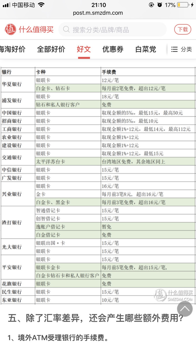 附上:境外取款手续费一览表