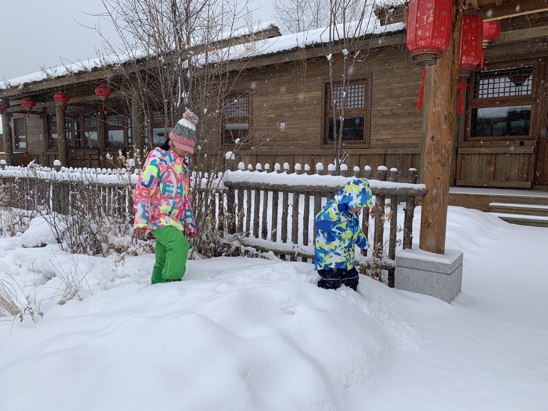 春节期间的价格比万达优惠,也是含两大一小的滑雪嬉雪,接送机,除了没有水上乐园,但我们大老远飞到东北,不是为了玩雪吗,所以水上乐园不是关键的。原乡客栈浓厚的东北特色,再加上出门就是厚厚的雪,这是最吸引我入住的地方,孩子每天晚上玩的不肯回家睡觉,早上出门吃早饭的路上,也是边走边玩雪,完全无法自拔