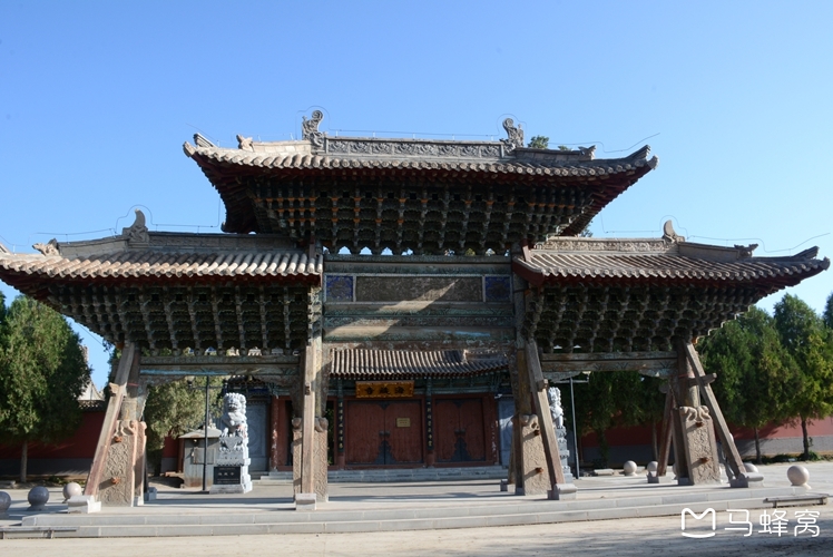 寺门前屹立着一座古朴的四柱三间木构牌楼。