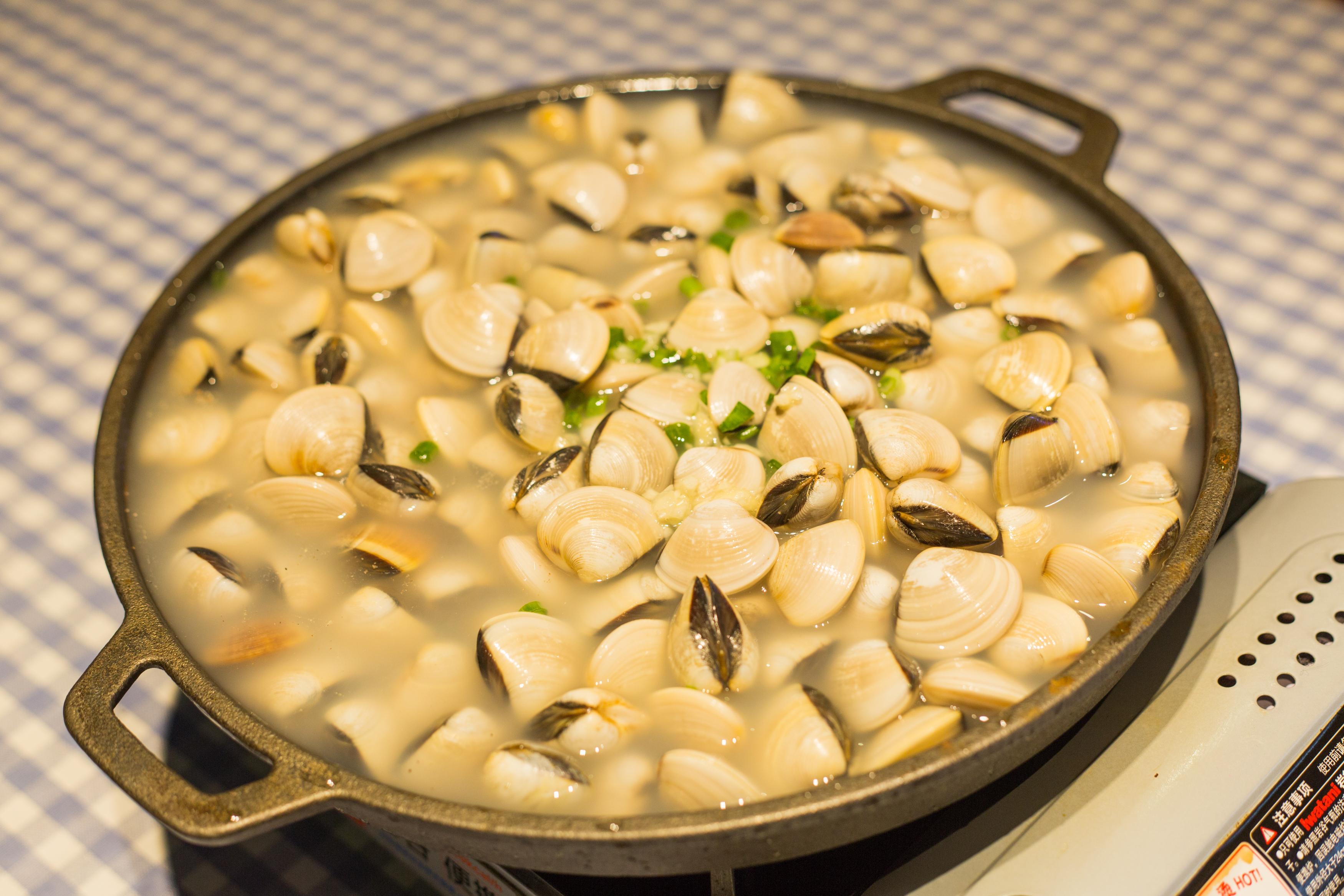 卜卜蚬是物美价廉的鲜贝,以高汤入馔,配以胡椒劈腥,加上葱花点缀。把卜卜蚬放置在生铁锅之中,汤水煮沸之时,蚬壳也随之爆开,并有“卜卜”的响声,不但颜色颇高,更是鲜美绝伦,一开锅便哄抢完毕!