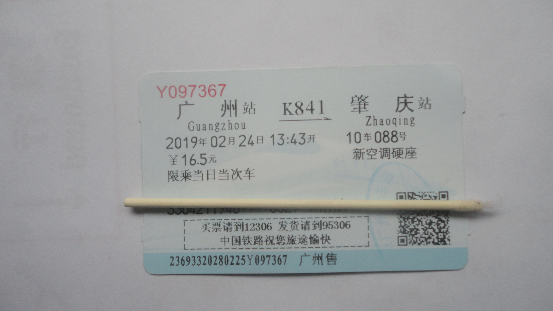 广州到肇庆的火车班次很多。车票16.5元。事先的功课没有做扎实,只知道七星岩离火车站很近。火车站旁边就是公交车站,所以打算在火车站一带住宿,一般城市的火车站附近都有食宿。