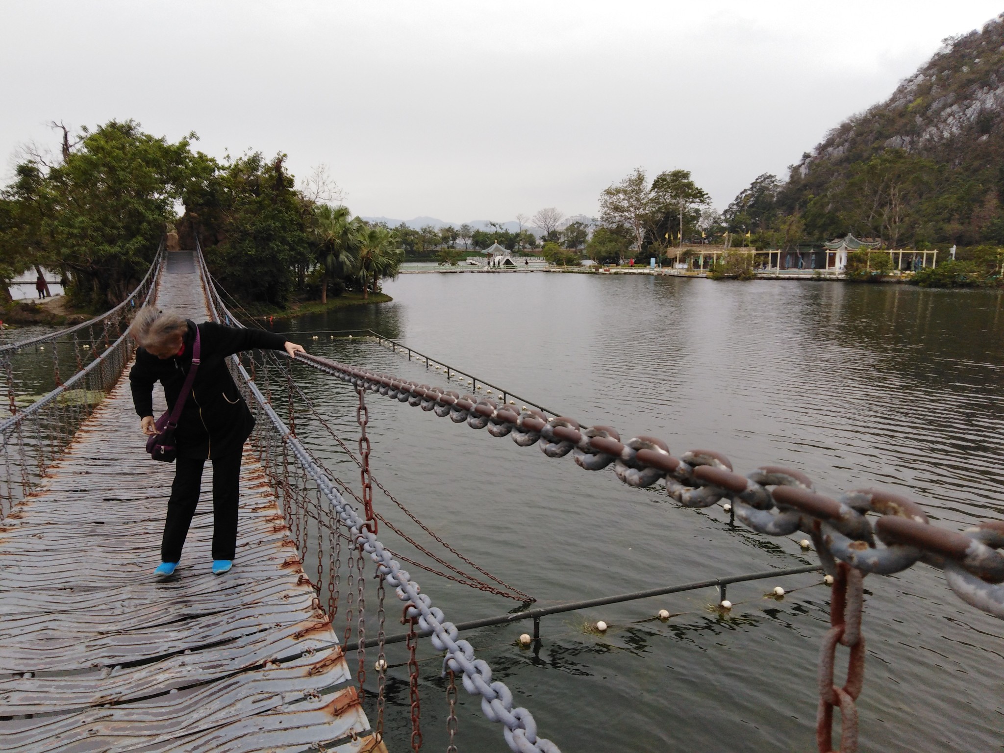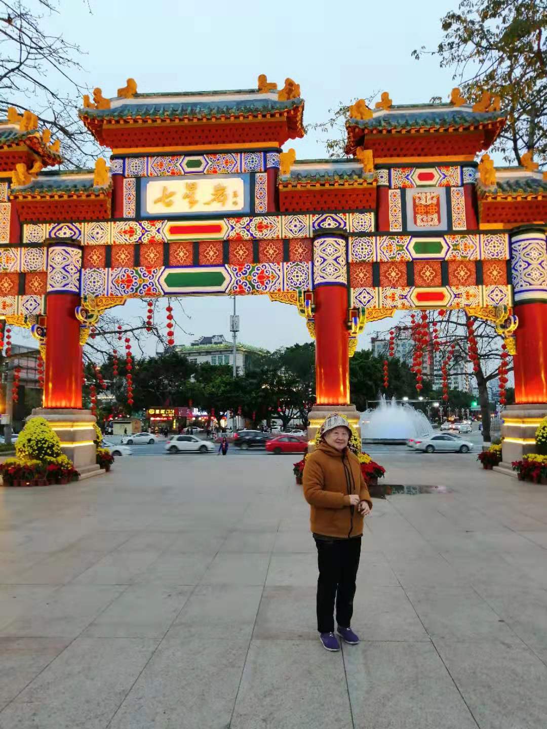 迷茫之际从口子进来一位老奶奶,虽然她拿着个包包,我还是认准她是当地人。不失时机的上前请教。她指点我们:坐1路车,到牌坊东下车,那里是市中心,热闹,有高档宾馆也有招待所。对面就是七星岩牌坊,晚上有音乐喷泉。。。。。。临走还告诉我们,她去游泳,每天都游。
