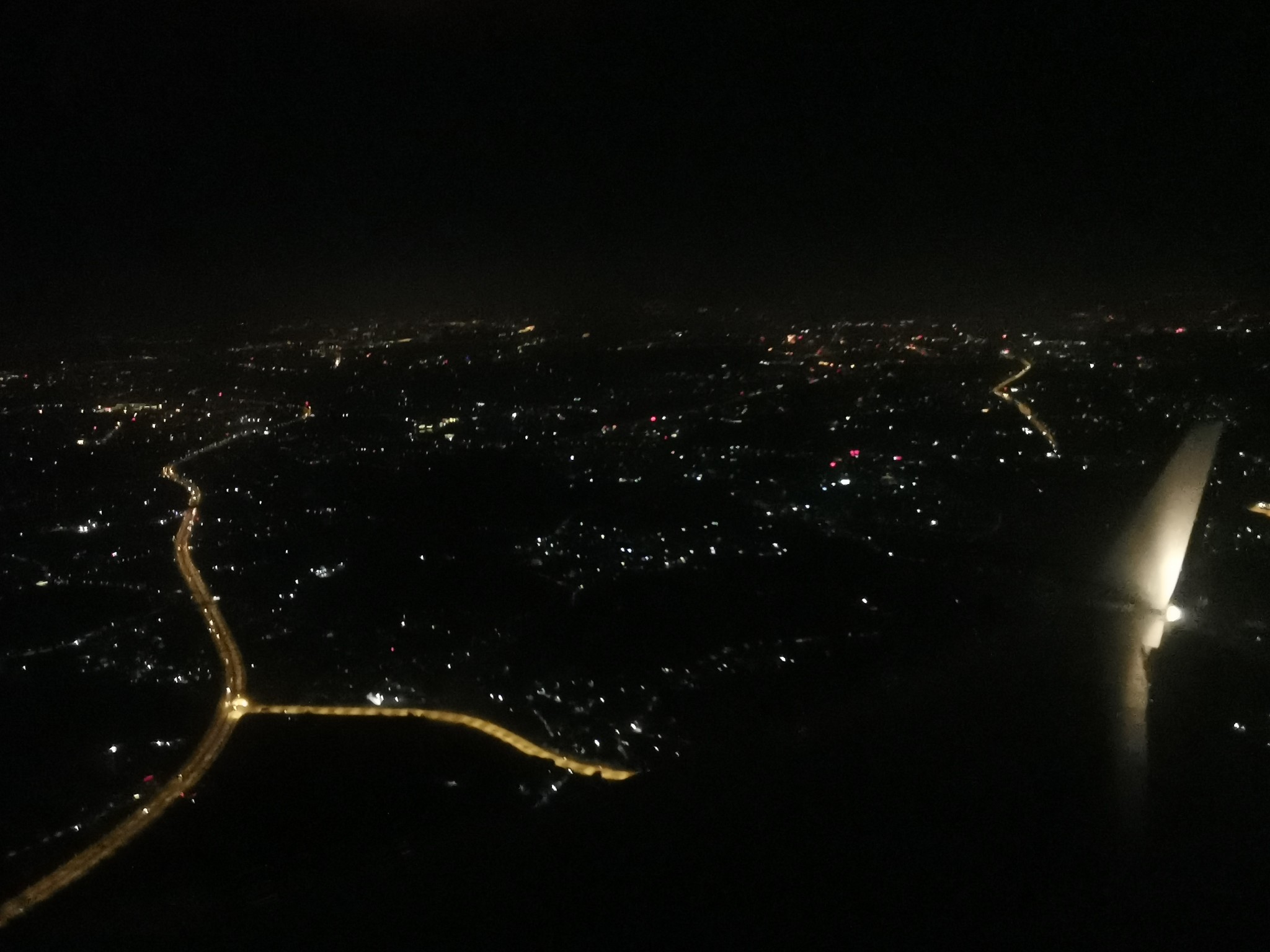 很快,空姐刚收拾完餐盒,地面一大片通明的灯光就出现在眼前。
