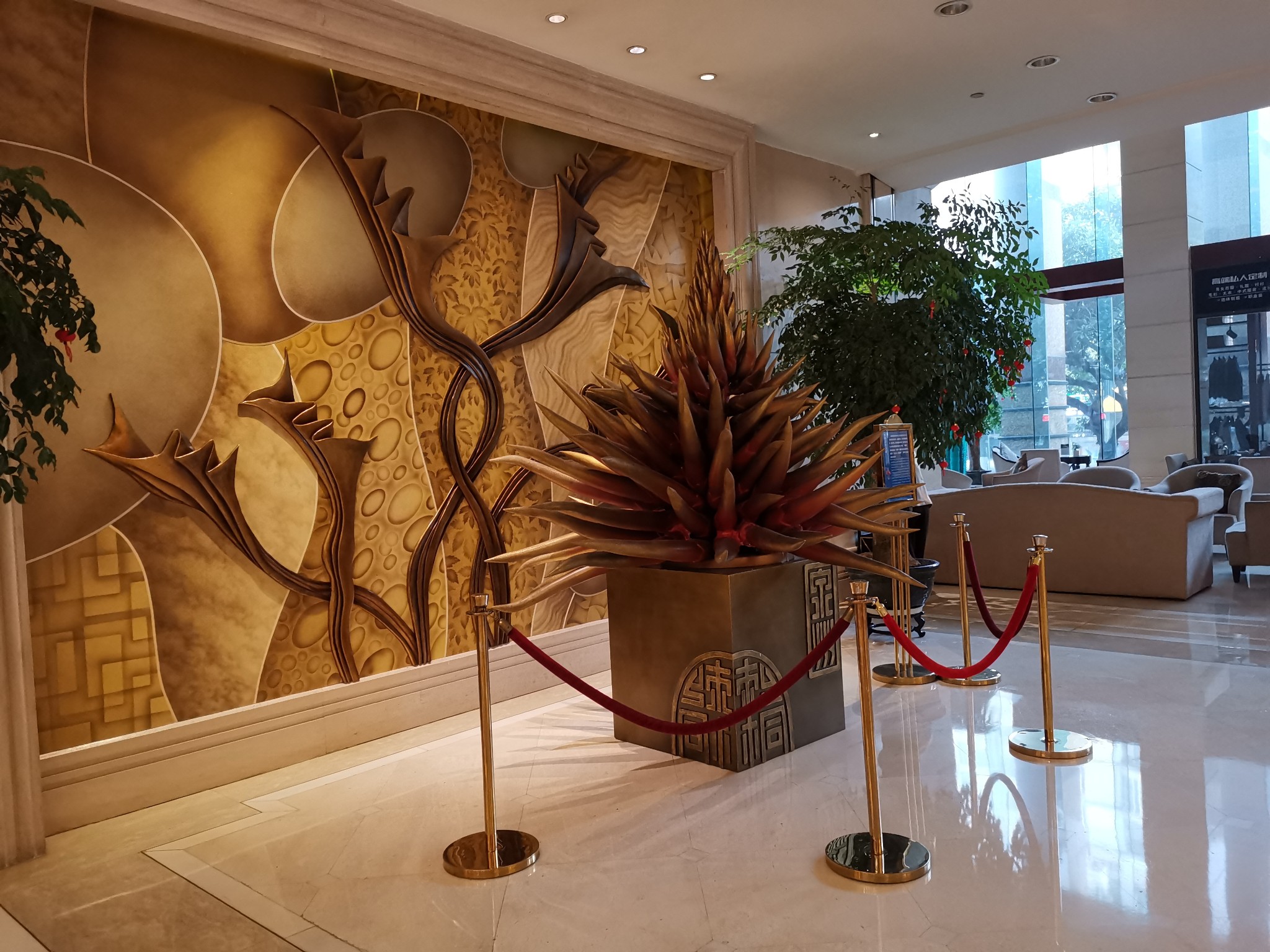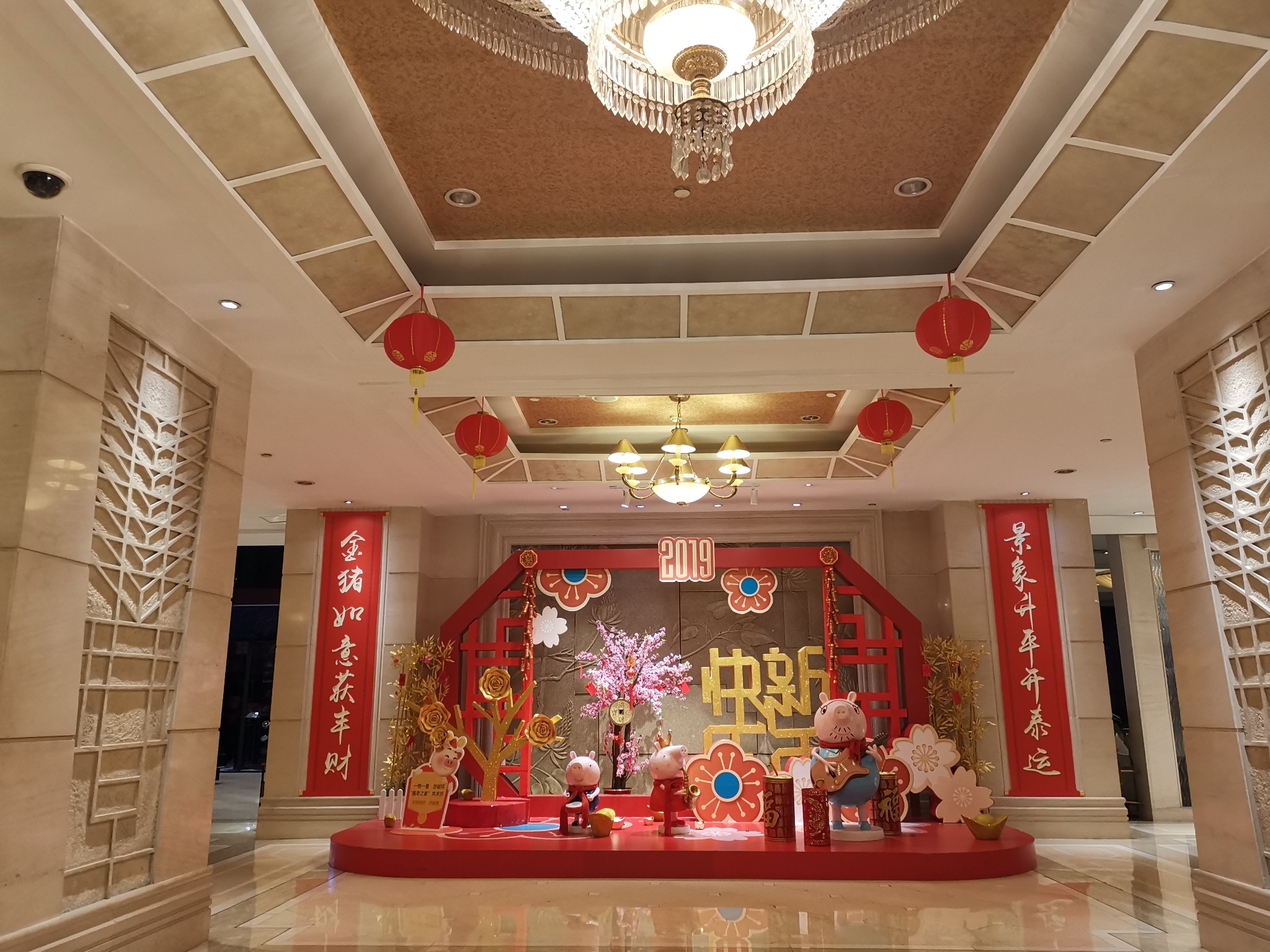 过快春节了,酒店大堂也是一派喜气洋洋。