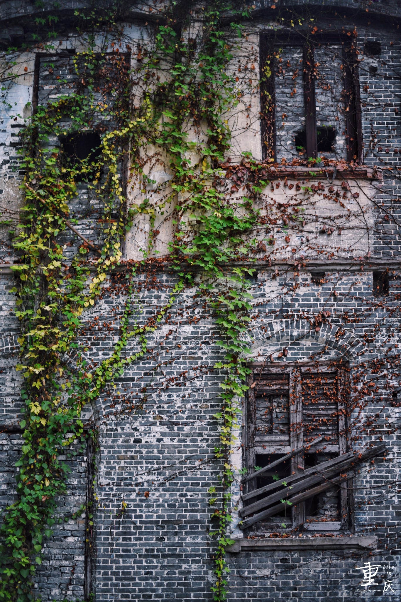 墙体斑驳,砖瓦青苔,窗面陈旧有洞,又开出新花,宛如一座巨大的艺术品。
