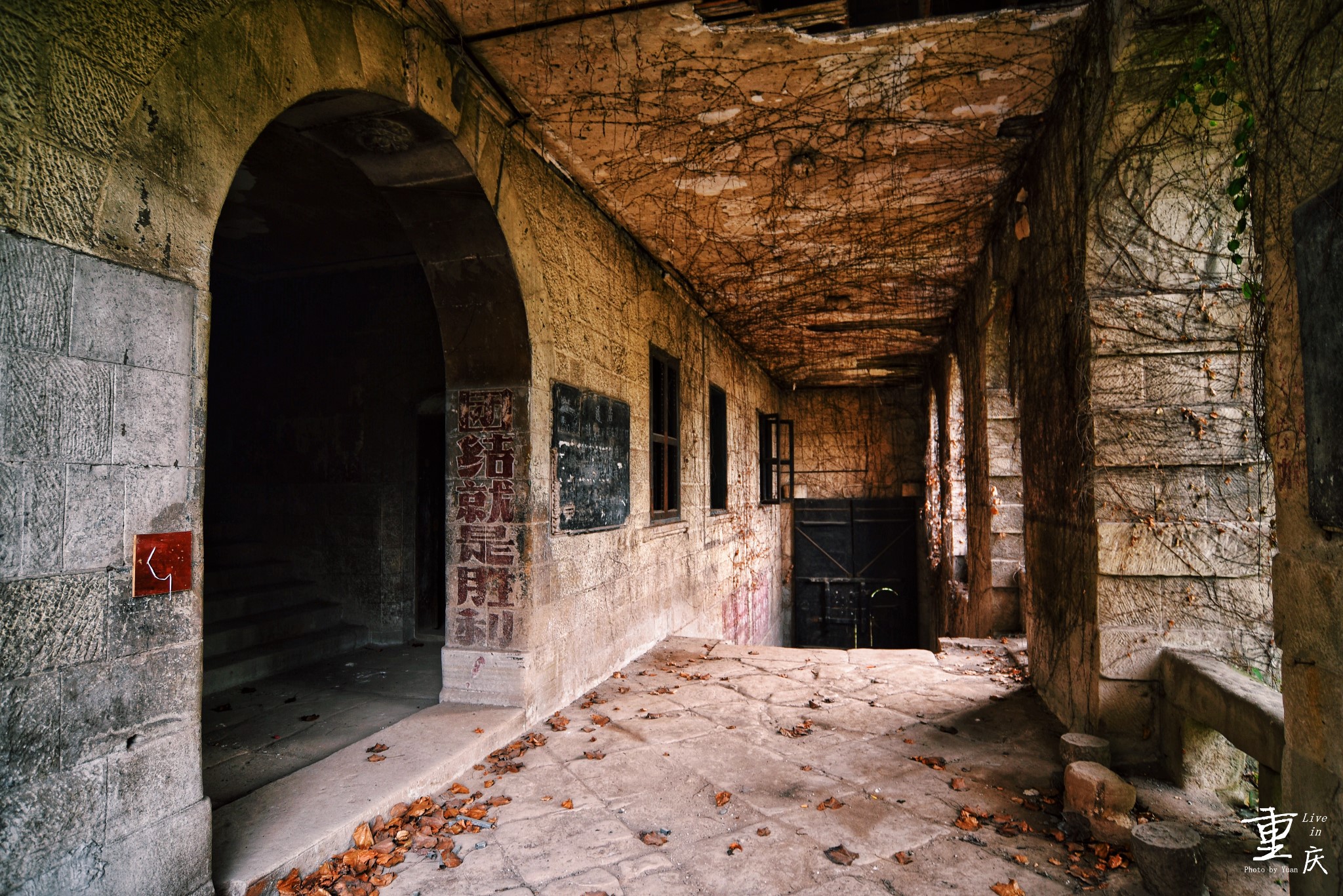正门处有一扇大铁门,锁上了,因为是文物所以被保护起来,不得入内,只能在门口隔着栏杆往里拍了几张,依稀可见“团结就是胜利”的口号标语印在墙上。