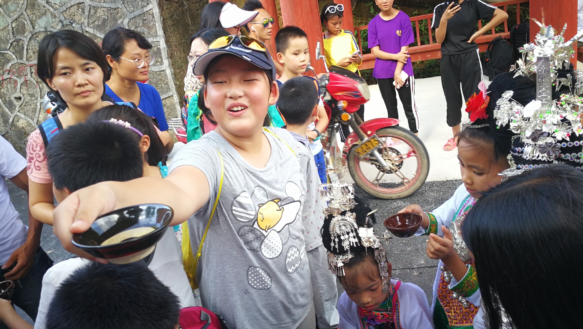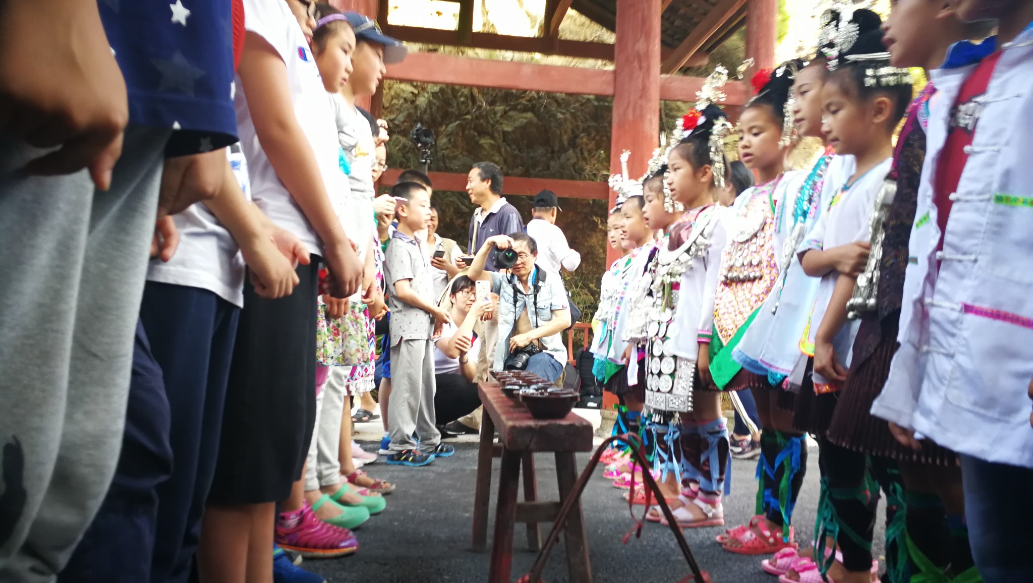 个村的小朋友集合起来,欢迎从北京来的小朋友。