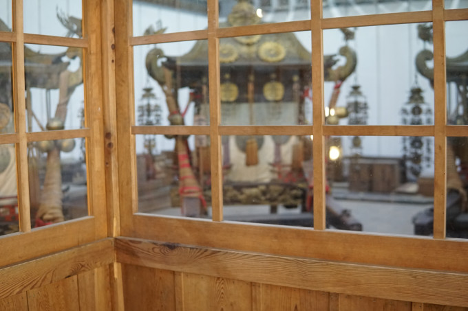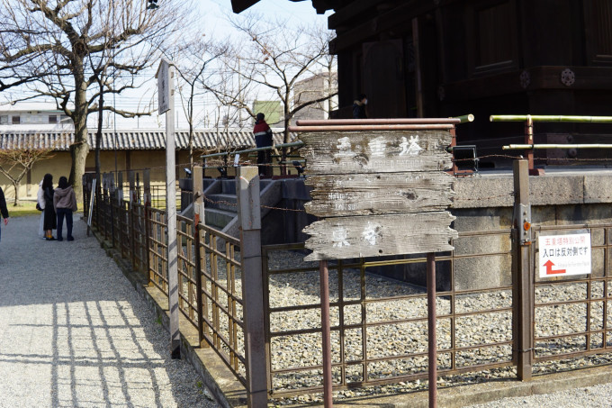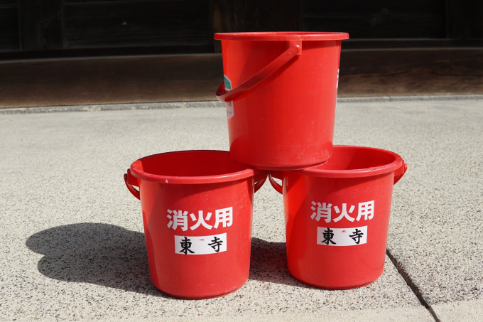这个水桶里盛了水,先开始觉得挺可笑的,这么先进的日本,用水桶来灭火,还只有这几小桶。但是后来想想,寺庙均为木质结构,可能也是考虑到这种方式能不破坏文物吧。