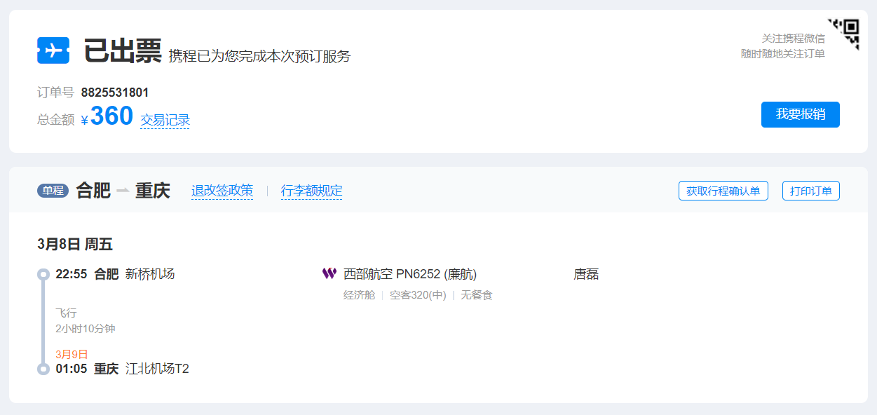 机票是在携程上提前几天订的,因为是廉舱航空所以比较便宜。然后通过航旅纵横看了这个航班的评论,全部都是差评,航班晚点或取消,不能免费托运行李,机上不提供免费的餐食,甚至连水都不会给一瓶。