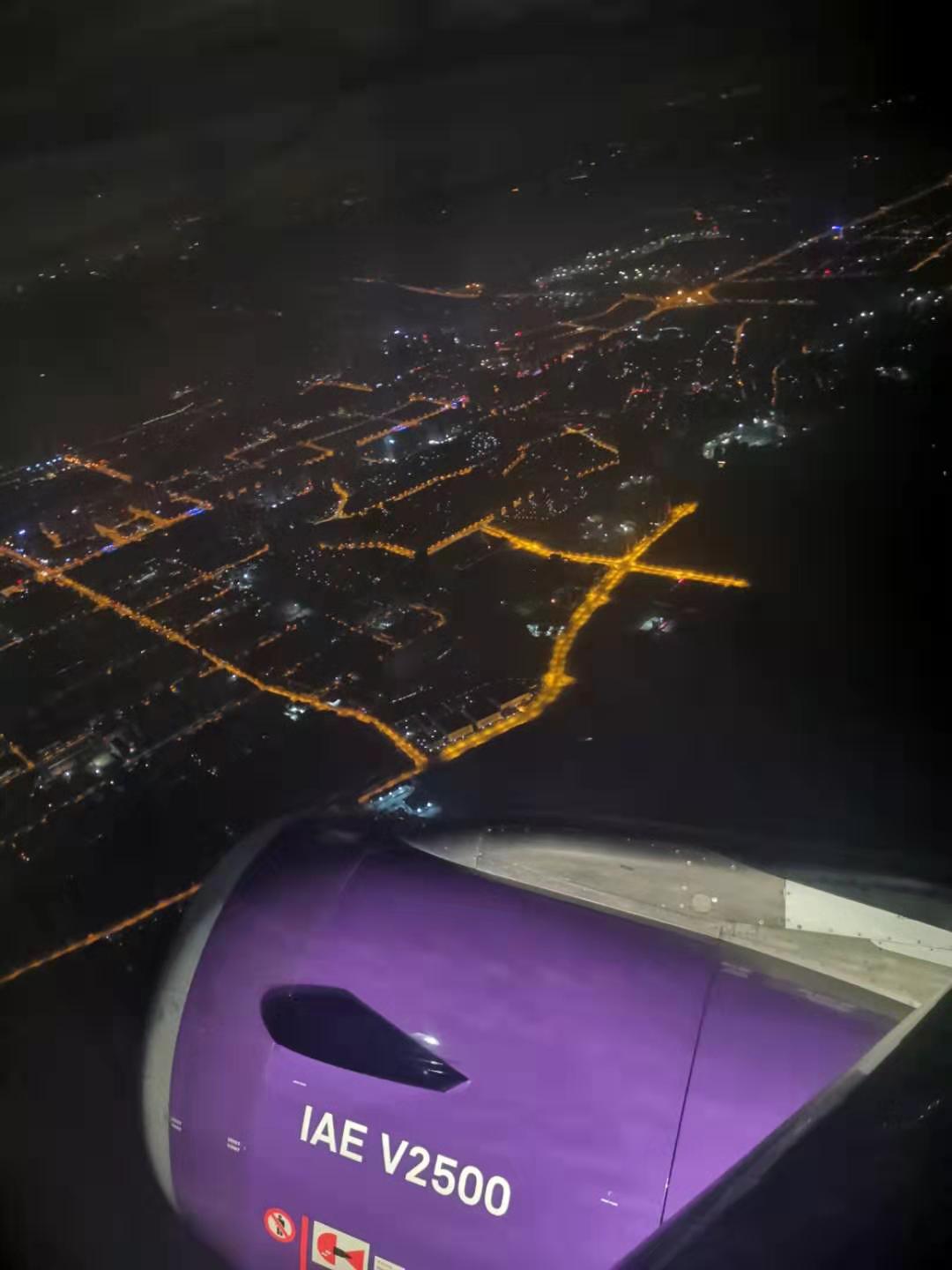 提前值了个靠窗的座位,3月9日00:51分开始降落,拍摄了一张外面的夜景,凌晨的重庆依然灯火通明