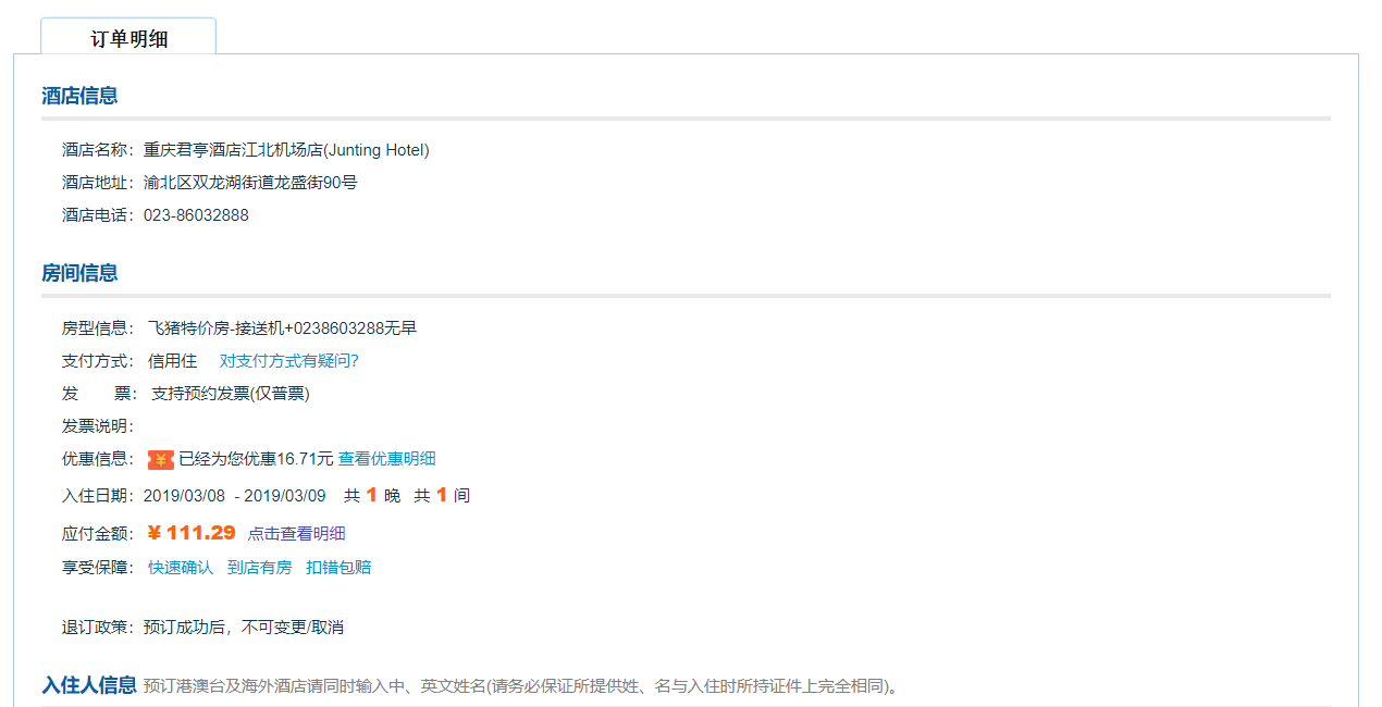 因为是看了这个航班的评论中说是经常会晚点延期好几个小时,所以没敢太提前订,之前在飞猪上看酒店,觉得这家还不错,也电话沟通过他们提供接送机服务,所以看到航班没有晚点,便在登机之前订了。