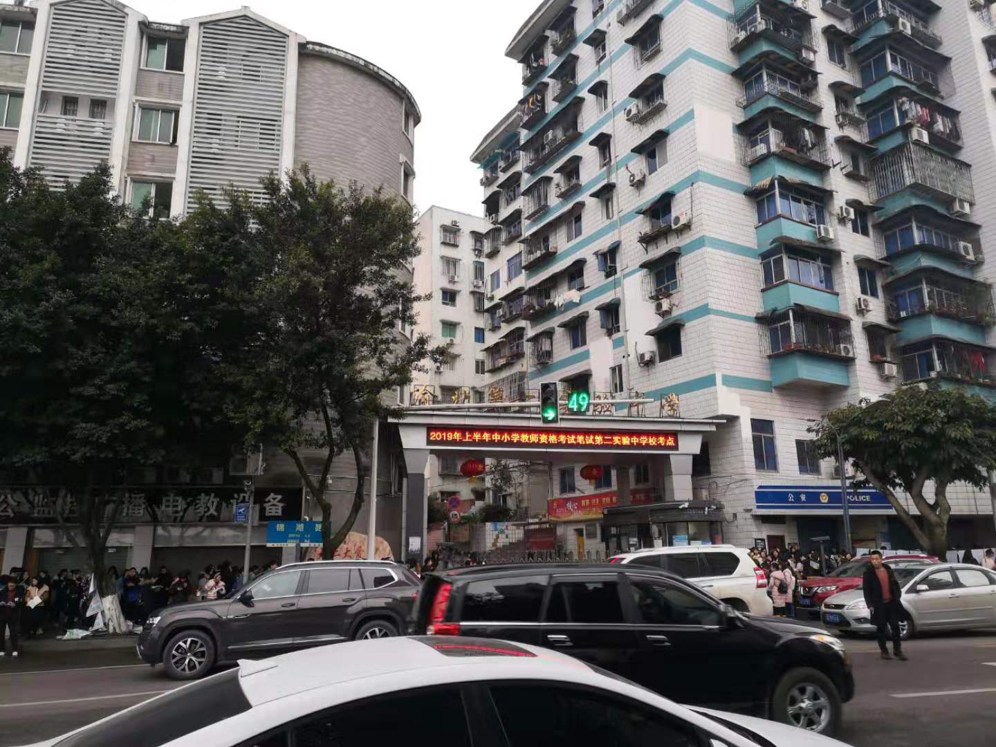 走到这里发现了一处考点,许多的人在外面等候着教师资格的考试,大部分都是小姐姐,重庆的小姐姐都特别地好看。