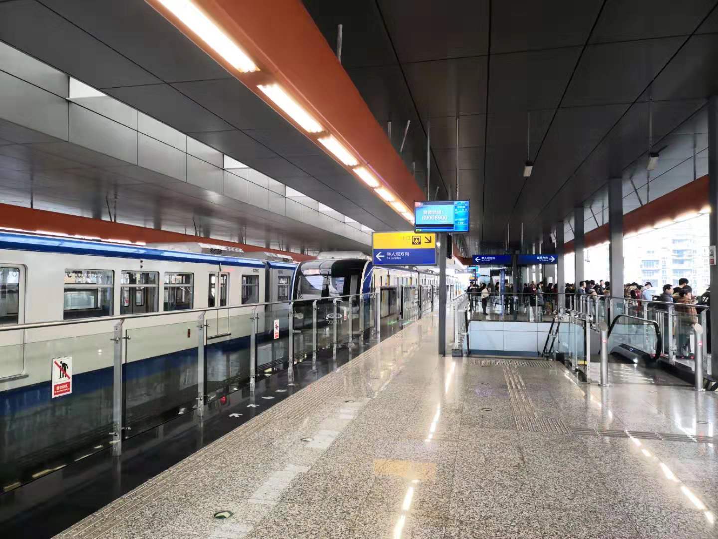 在这里排队等候轻轨,这也是我第一次乘坐轻轨。