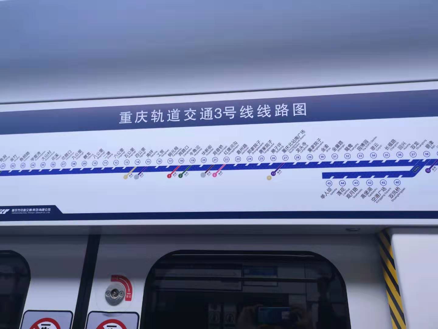 重庆轨道交通3号线线路图,不知道为啥重庆的轻轨有四、五、六、八、九公里,就是没有七公里?