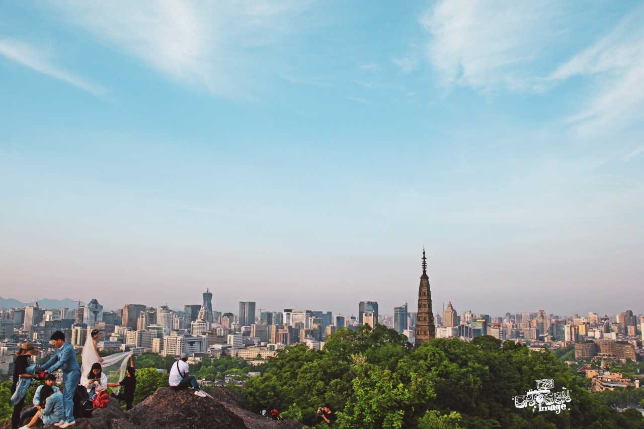 【 宝石流霞 】我不是爬楼党,但我无法拒绝上帝视角带来的冲击。爬山的路线很多,最常见的一条是从浙大玉泉校区那里上山,不到半个小时就可登顶。爬到山顶的巨石上(注意安全!),你可以俯瞰整个西湖,近处的 白堤 ,远处的雷峰塔还有繁华的湖滨商圈都收入眼下。看看断桥上的人潮吧,你会发现他们那么渺小。