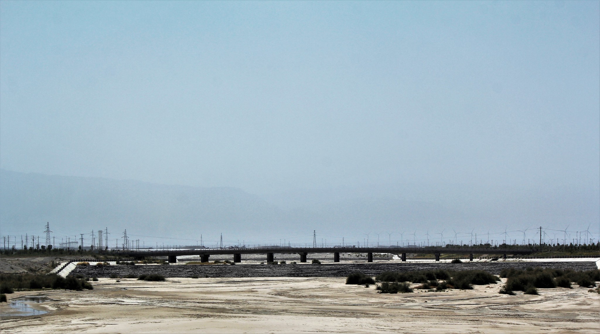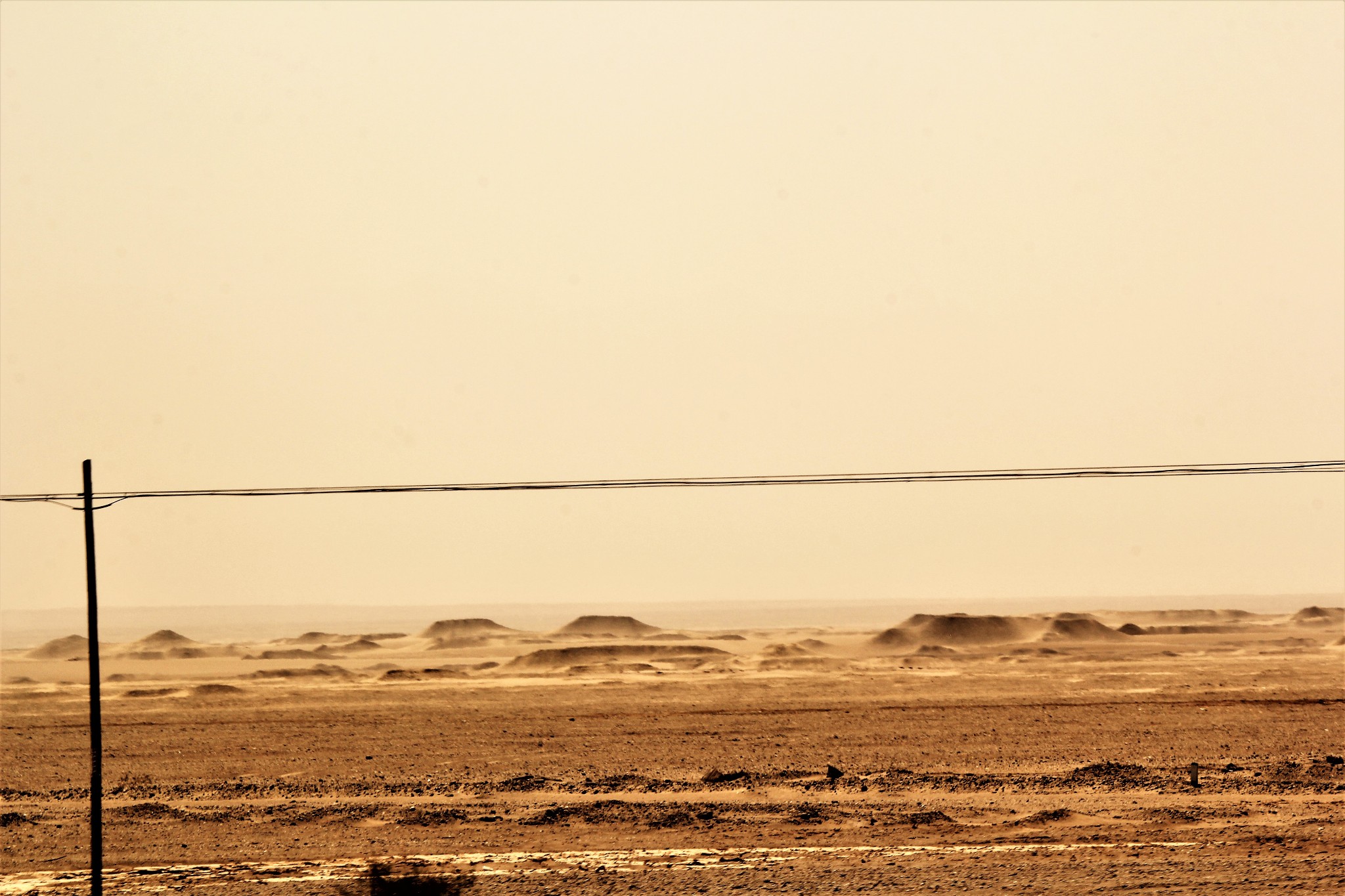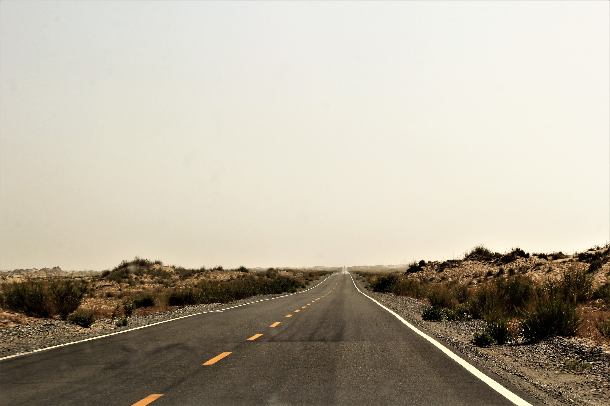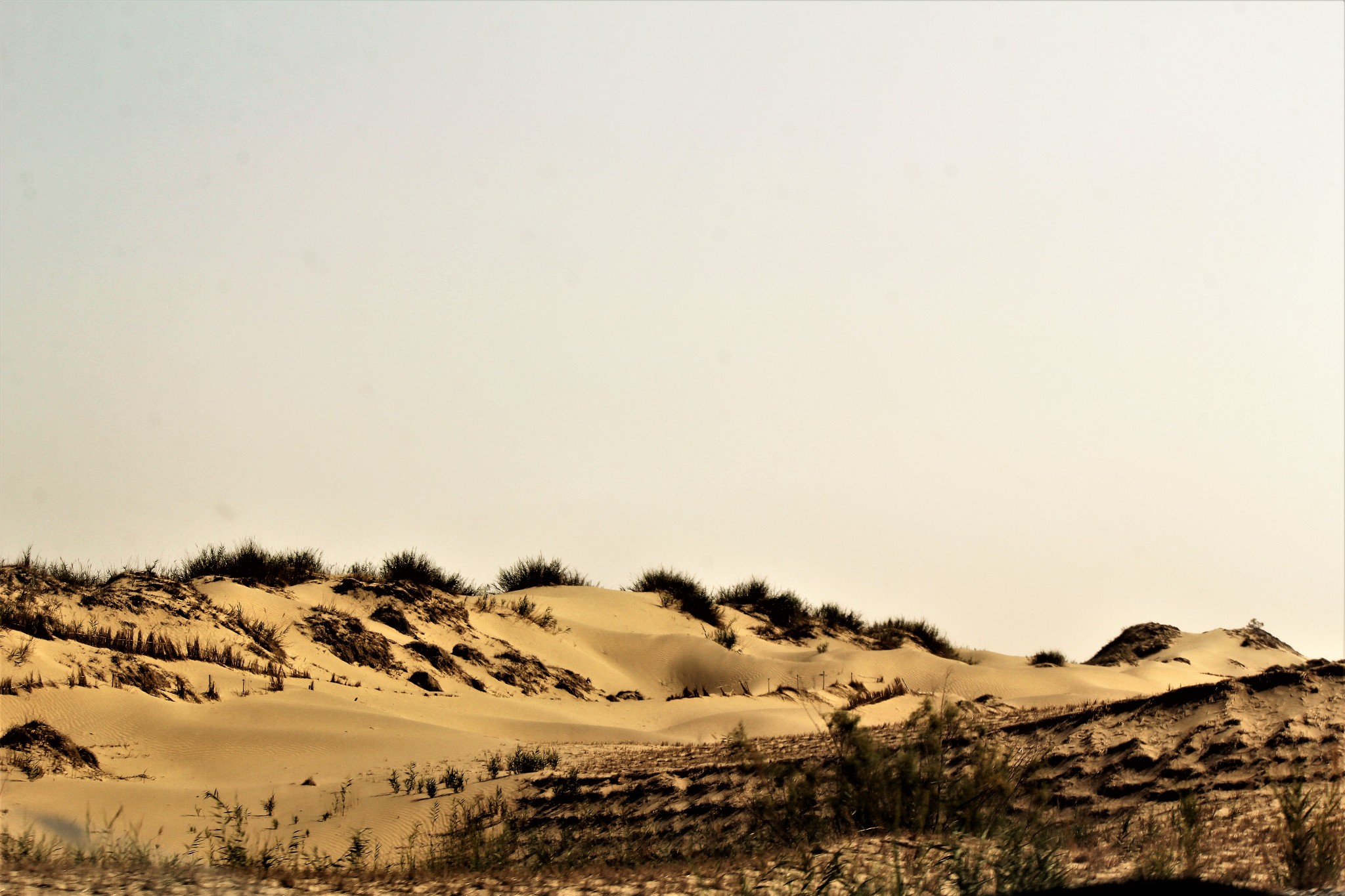 走出绿洲,公路两旁已无杨树,取代它的是灌木和芦苇。