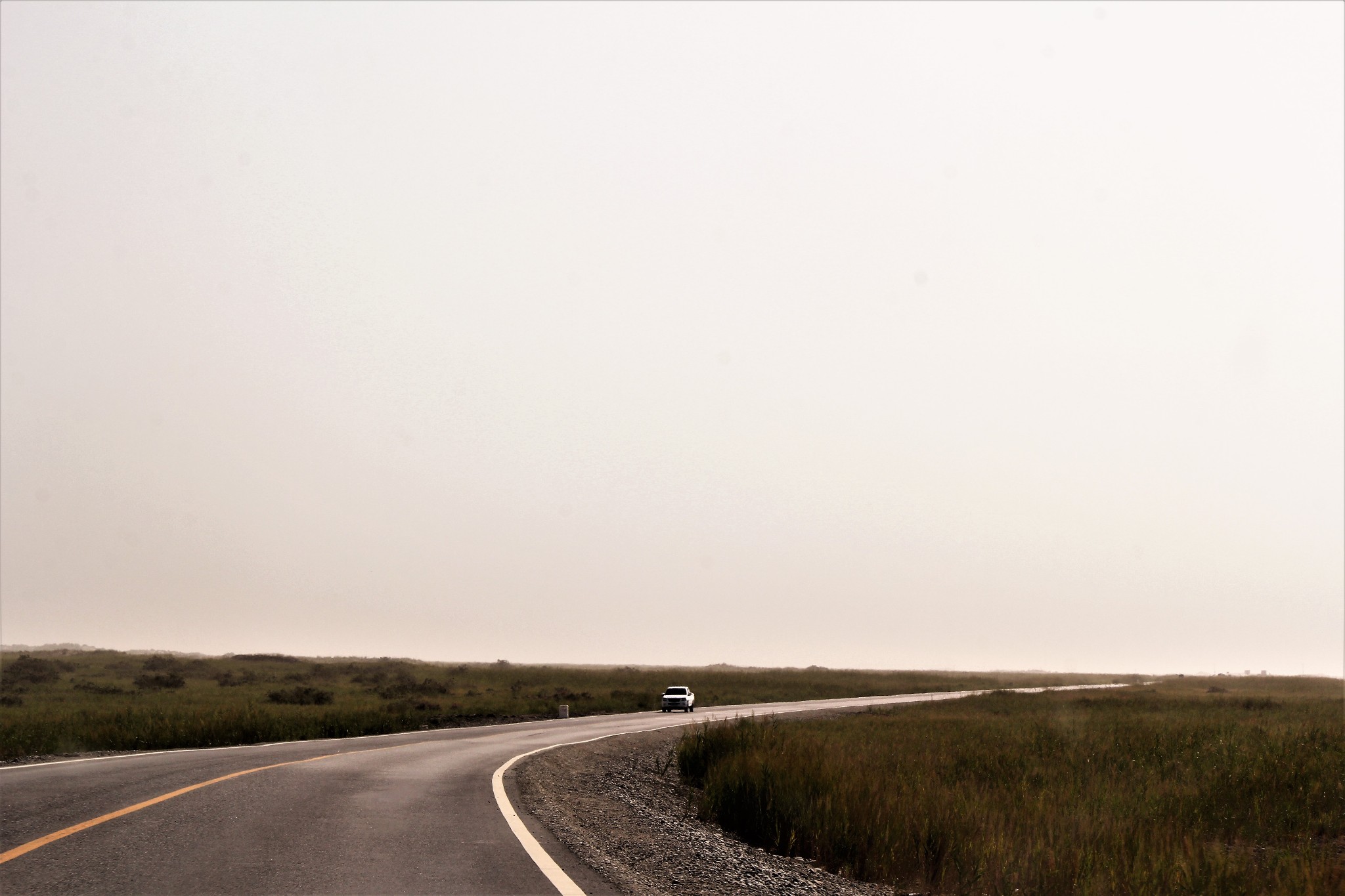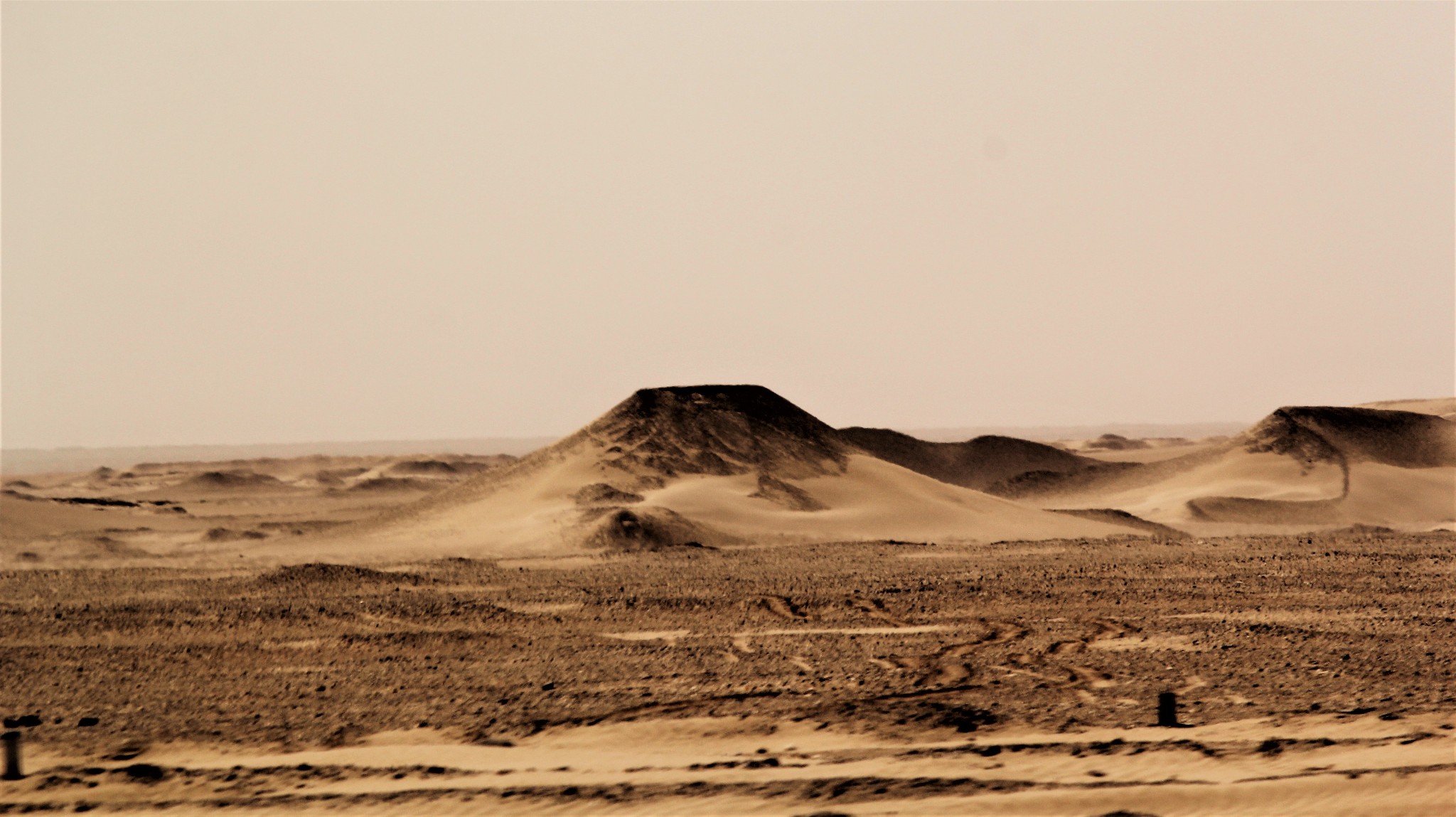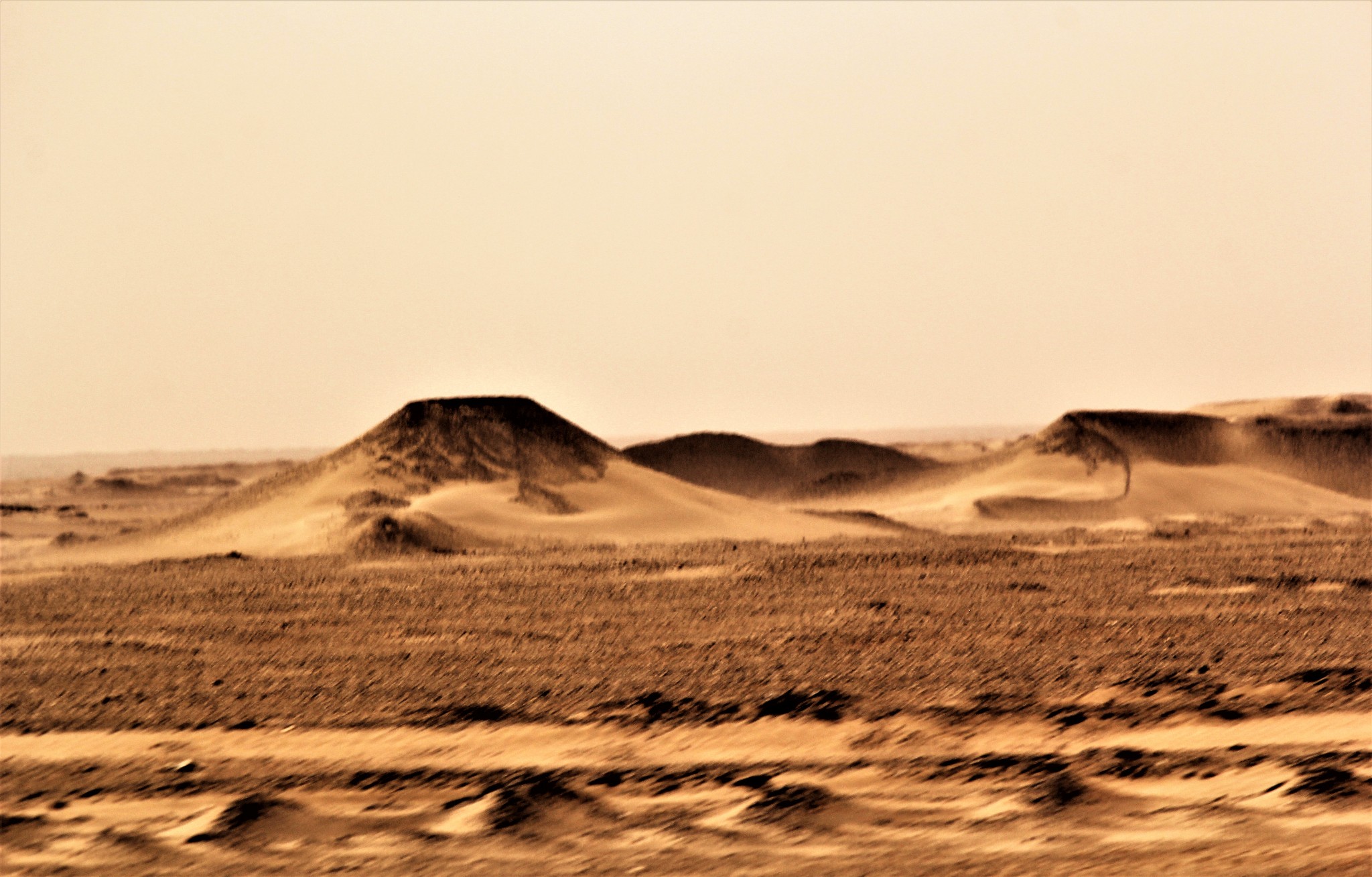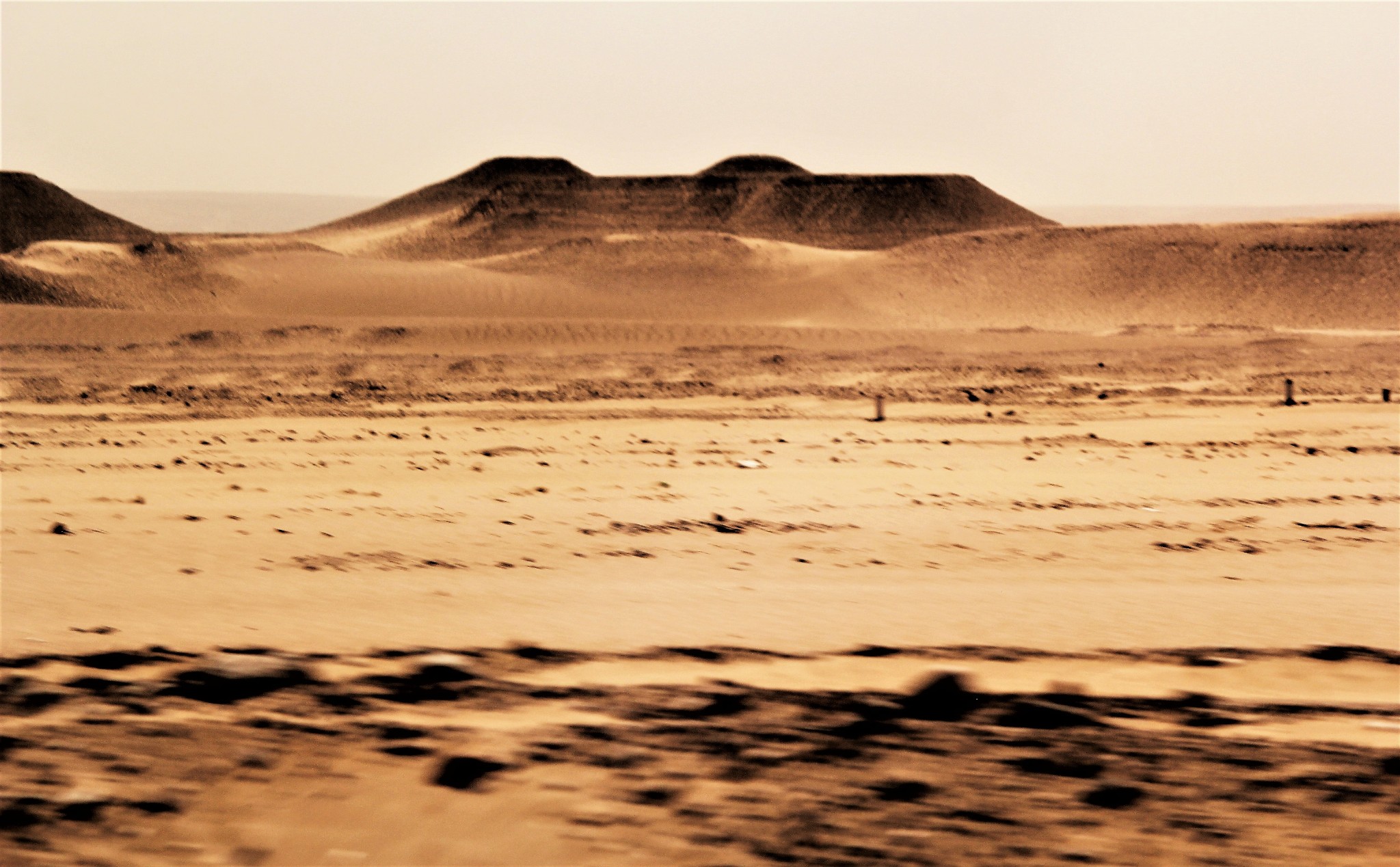 走出绿洲,公路两旁已无杨树,取代它的是灌木和芦苇。