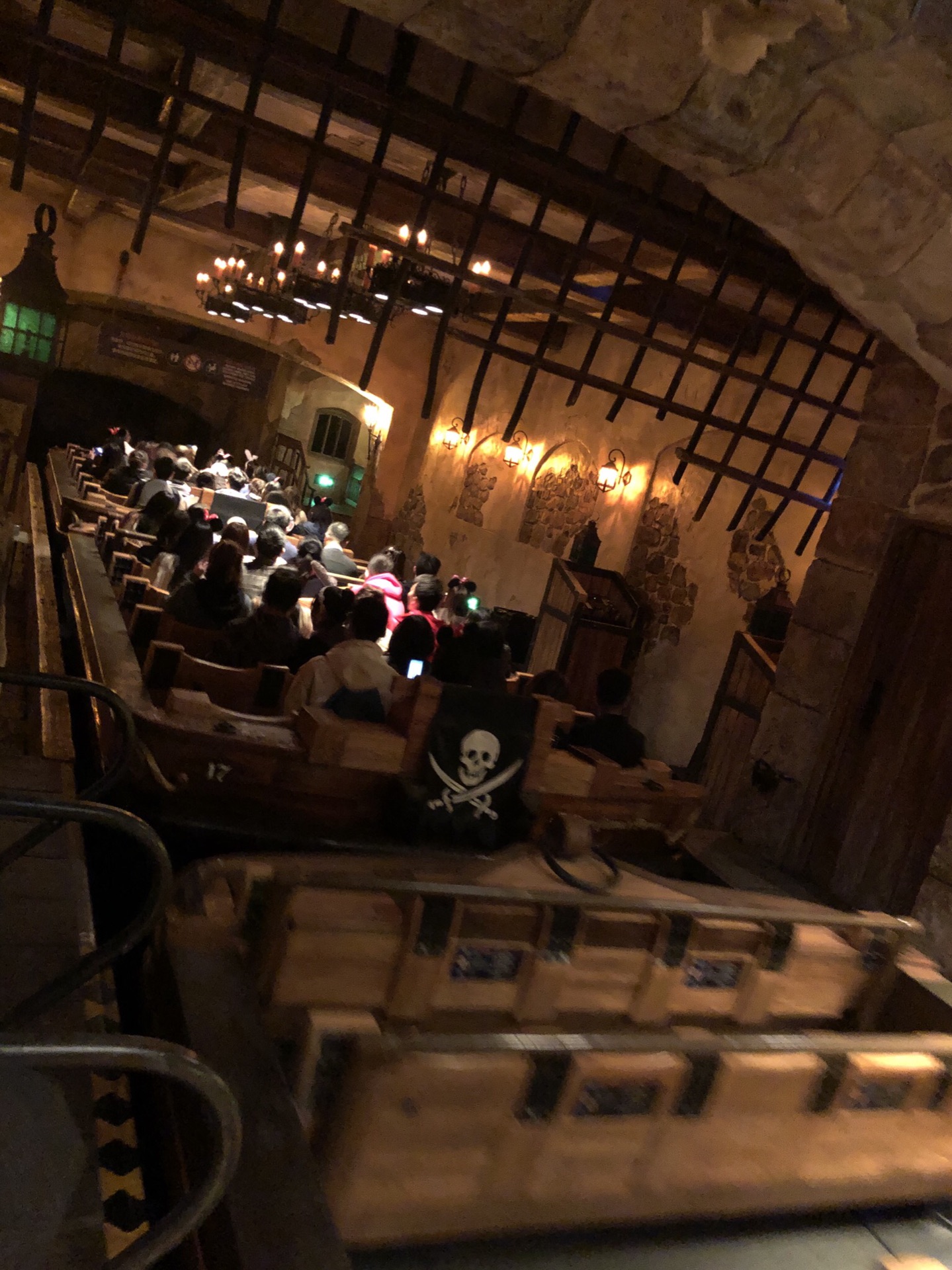 我们一入园便直奔冒险岛,第一个就去玩飞跃地平线,大概排了5分钟队吧,接着慢慢走到雷鸣山漂流,也是5分钟就玩上了。这两个超级热们项目被妥妥的攻下,玩过雷鸣山漂流之后才发现忘记领9点开放的FP了,赶紧掏出手机。需要注意的是,一个app只能绑定五张票,我们八个人是由我和表妹两个人分别领取的,相差时间就10分钟左右,不碍事的,可以一起进入玩耍,于是我们领了11:30的七个小矮人矿山车。前面两个FP把我们的阿贝小姐吓得快哭了,她第一次玩这样的游乐项目,这样不痛快的负面情绪一直带到了加勒比海盗结束才好起来。因为还没到矿山车的时间,我们又插空走了一圈爱丽丝梦游仙境迷宫,大部分是为了拍照吧,这个就不推荐了。紧接着就去旁边的七个小矮人矿山车排FP通道,差不多排5分钟的样子就坐上了,排队期间我和表妹又迅速领了下午小飞侠的FP,一点也没闲着。这个矿山车真的很好玩哎,有点刺激又不惊险,特别适合我们这群“老阿姨”。阿贝小姐越战越勇,她说这个矿山车是园里最喜欢玩的项目