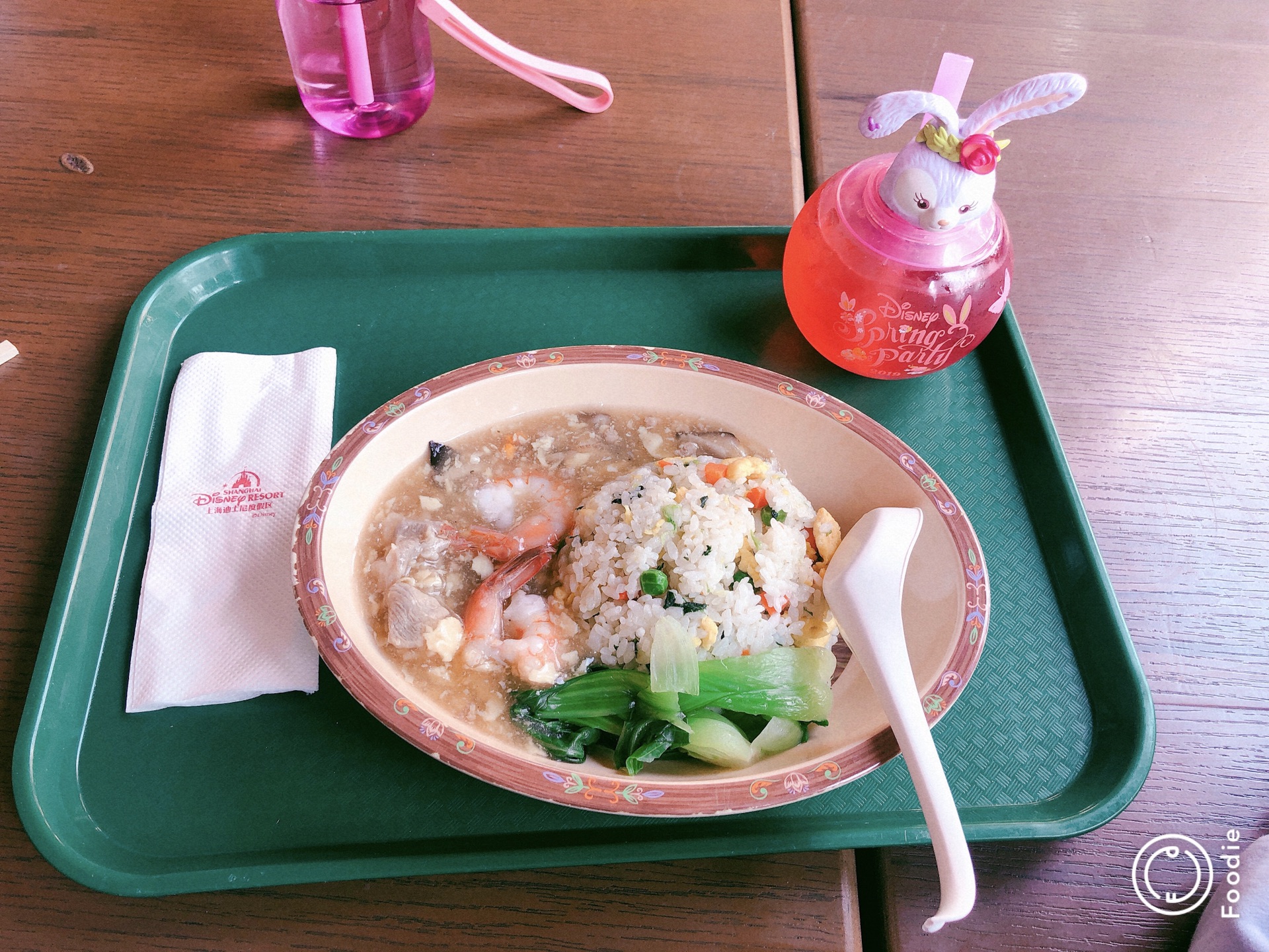 午饭就在城堡附近的皮诺丘乡村厨房吃的,我和阿贝小姐点了一份海鲜饭就够了,而这个海鲜饭却是我在迪士尼度假区吃的最好吃的主食