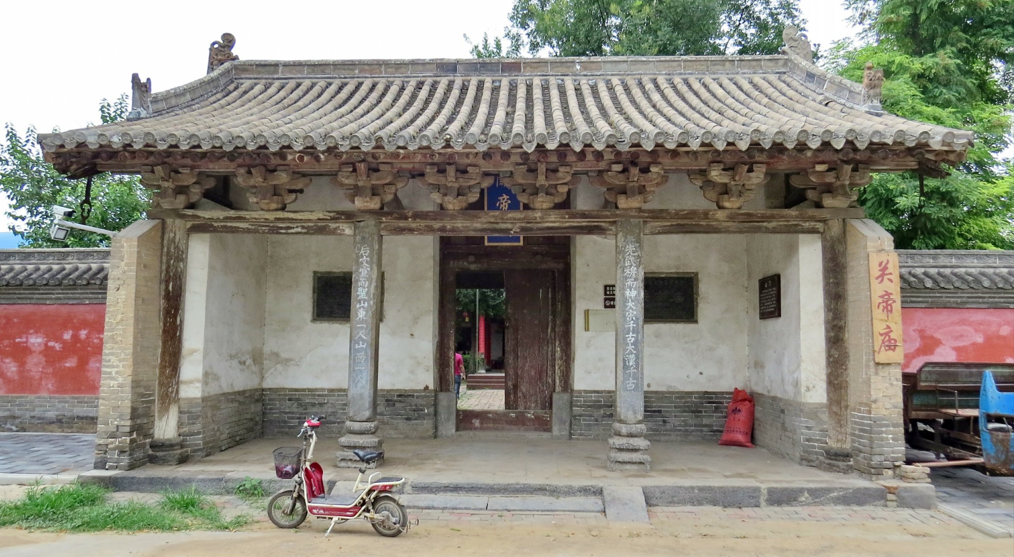 门前楹联题记,将关羽和岳飞孔子相提:先武穆而神,大宋千古大汉千古后文宣而圣,山东一人山西一人