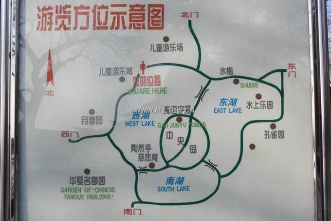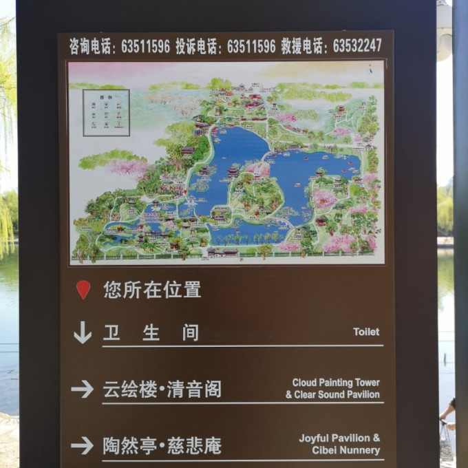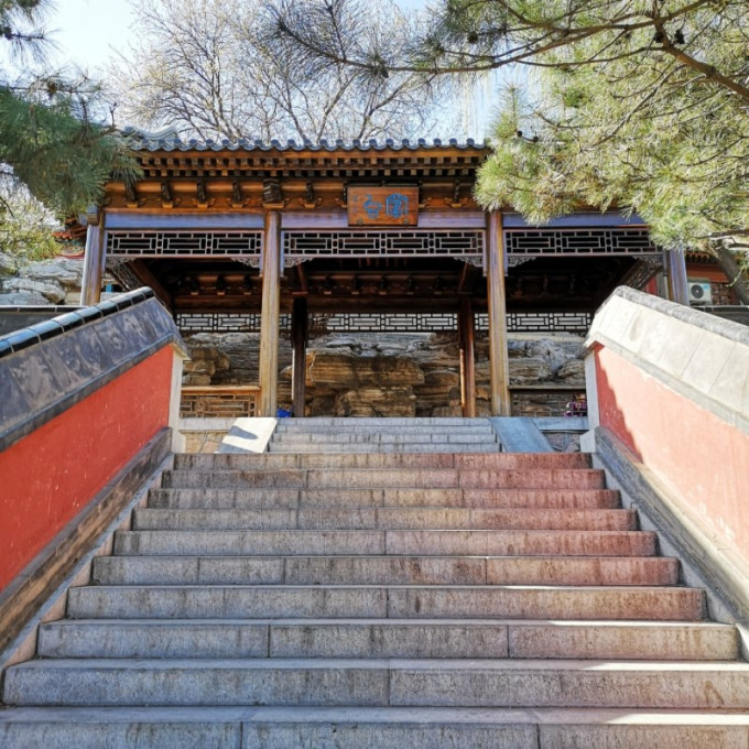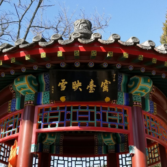 慈悲庵在三面临湖、三桥汇聚的小高地~中央岛上。其北与窑台隔湖相望,东与中央岛揽翠亭对景,向西遥看精巧的云绘楼、清音阁。中国四大名亭之一的陶然亭就在慈悲庵中。可惜铁将军把门儿,今儿个就别想看睹其真容了,留个下次再来的理由吧。