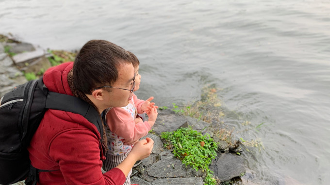 小雨过了一晚也没有停的意思,我们打算带着小宝去喂喂金鱼。