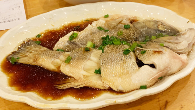 葱油鲈鱼肉质鲜美,雨不大但是很新鲜。