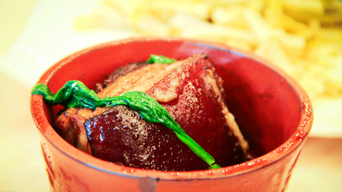 我们吃的酱烧排骨用的是脊骨,味道偏咸。