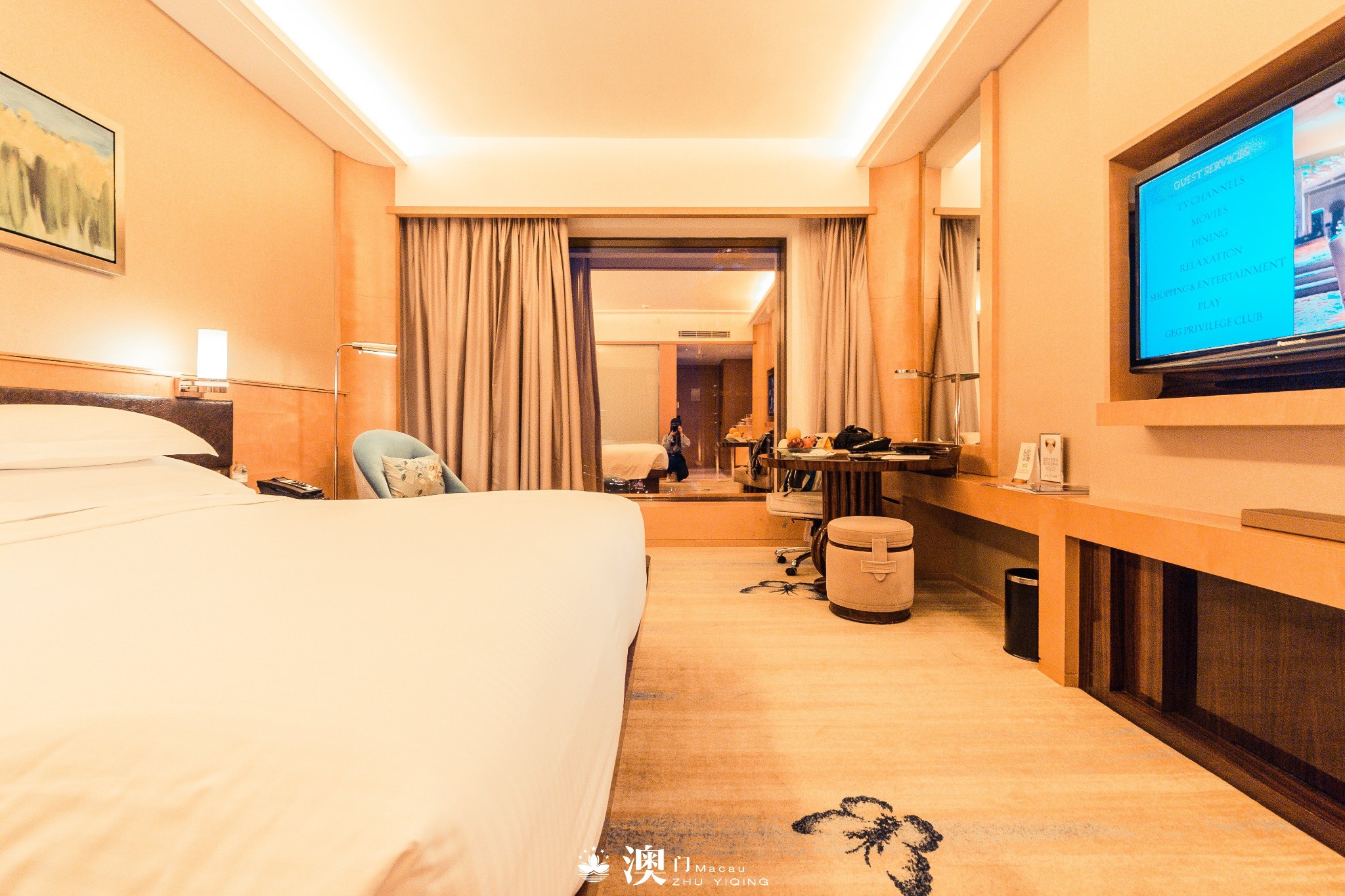 从澳门机场出来,温度和湿度瞬间升高了几度,酒店有接机,从出机场到进酒店,行云流水还不到十分钟,我都没好好呼吸澳门的空气呢,就一脸懵逼地被塞入了酒店,澳门银河酒店离机场也太近了吧。