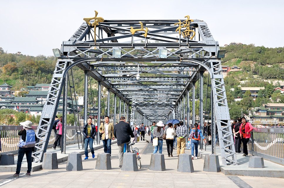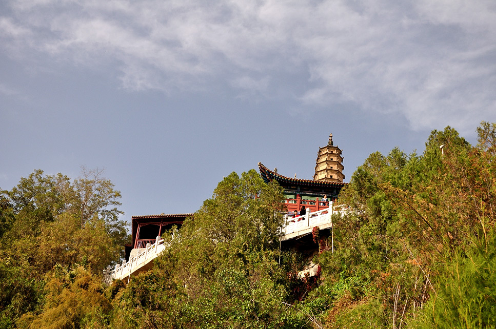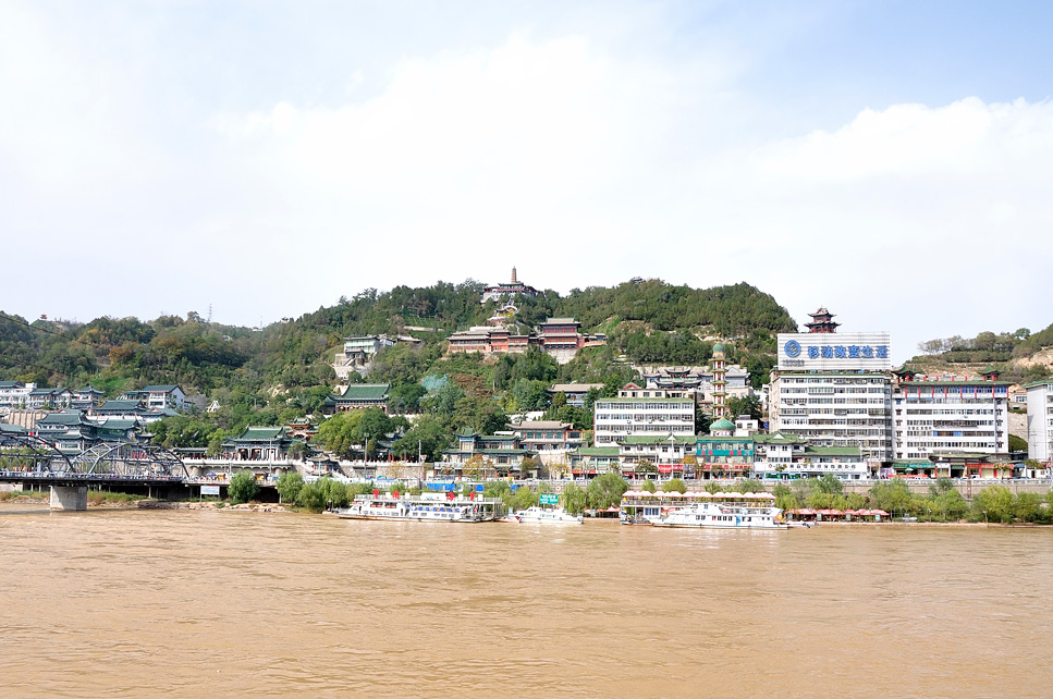 吃完牛肉面,我们又来到黄河边详细参观中山桥,过了中山桥后上白塔山公园玩。白塔山公园的路不太好走,我们走着走着居然会走到没路可走,只好穿越树林手脚并用爬了一段山坡才又上到正道上。在白塔山上可以俯瞰依黄河而建的兰州城。