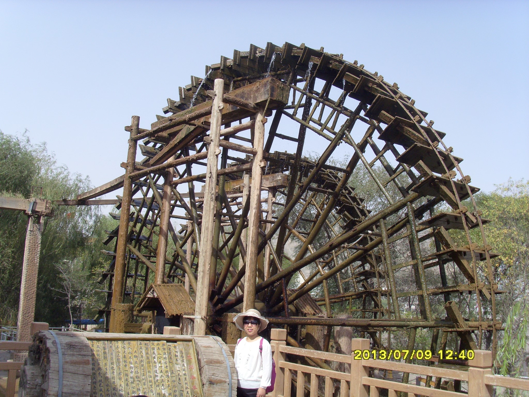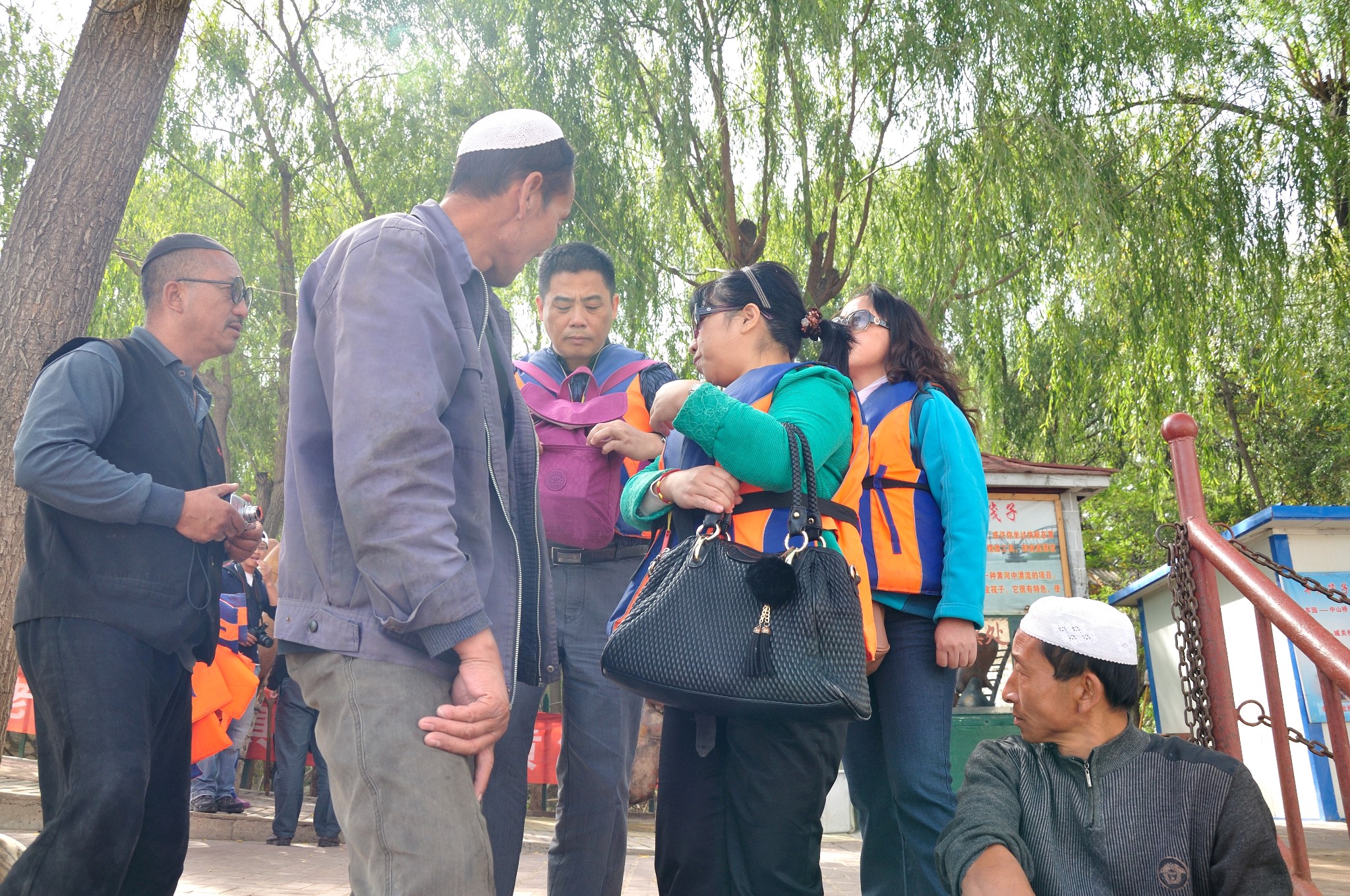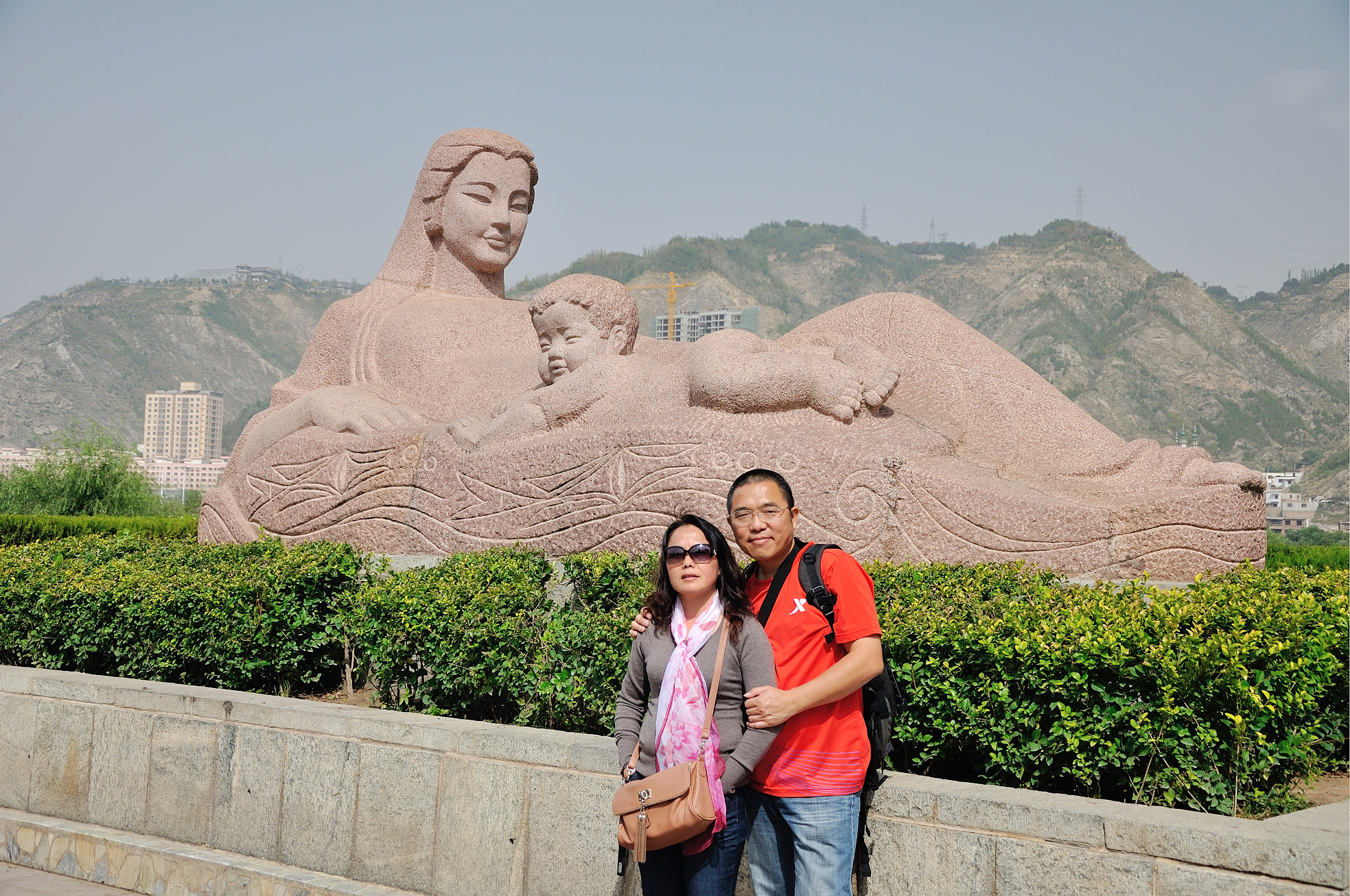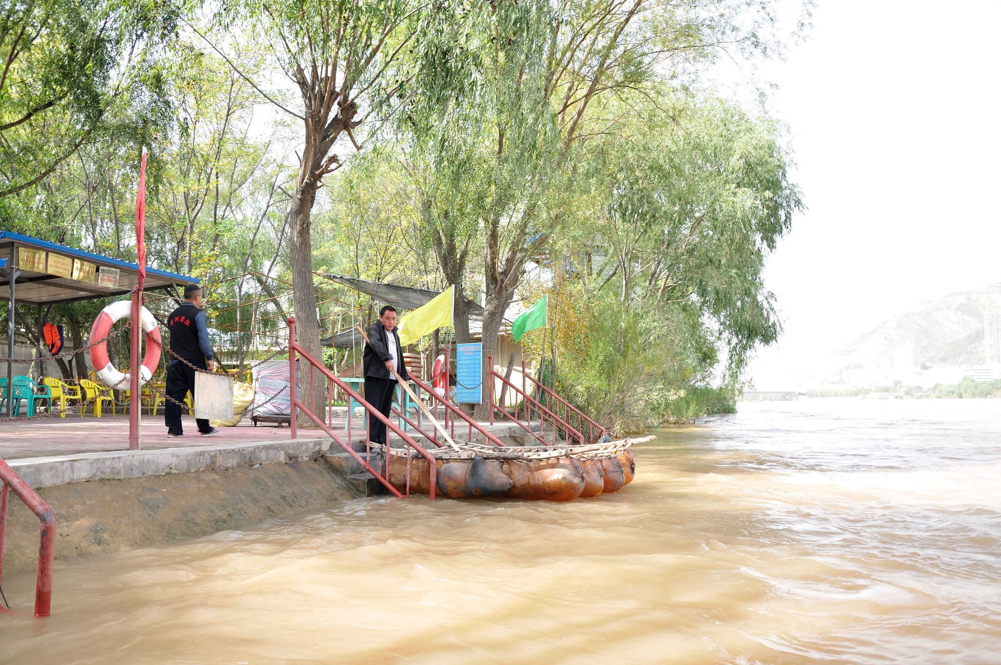 第二站来到西湖公园,穿过西湖公园在黄河岸边有一座黄河母亲雕塑像。在这里拍了照之后沿河漫步而下,来到水车园。水车园需要门票,每人10元,园内有羊皮筏,坐羊皮筏漂流到下游铁桥每人50元,如果往返则每人70元,我们因为要到铁桥玩,只坐单程,不知是不是因为这个原因,筏工师傅态度很不好。这是在兰州接触的当地人中态度最不好的一位。