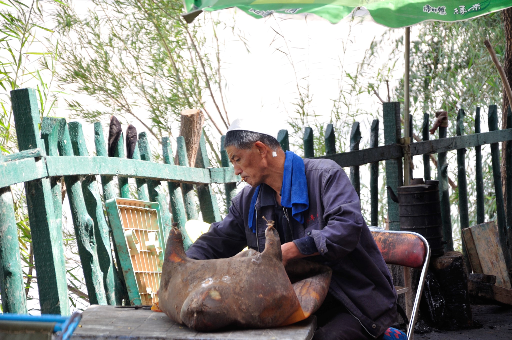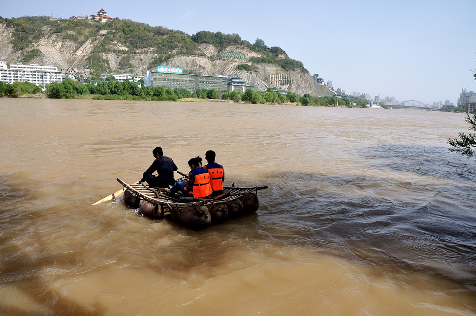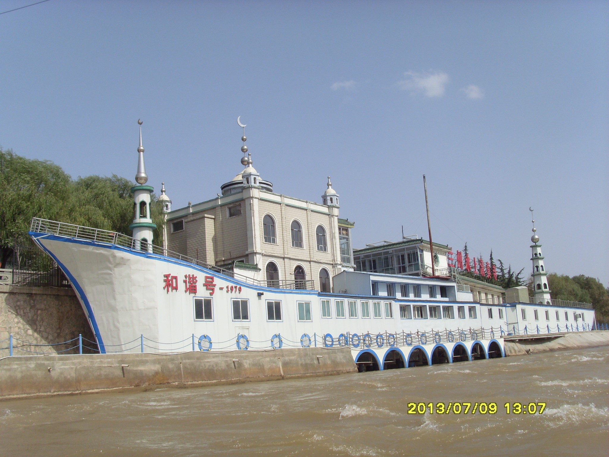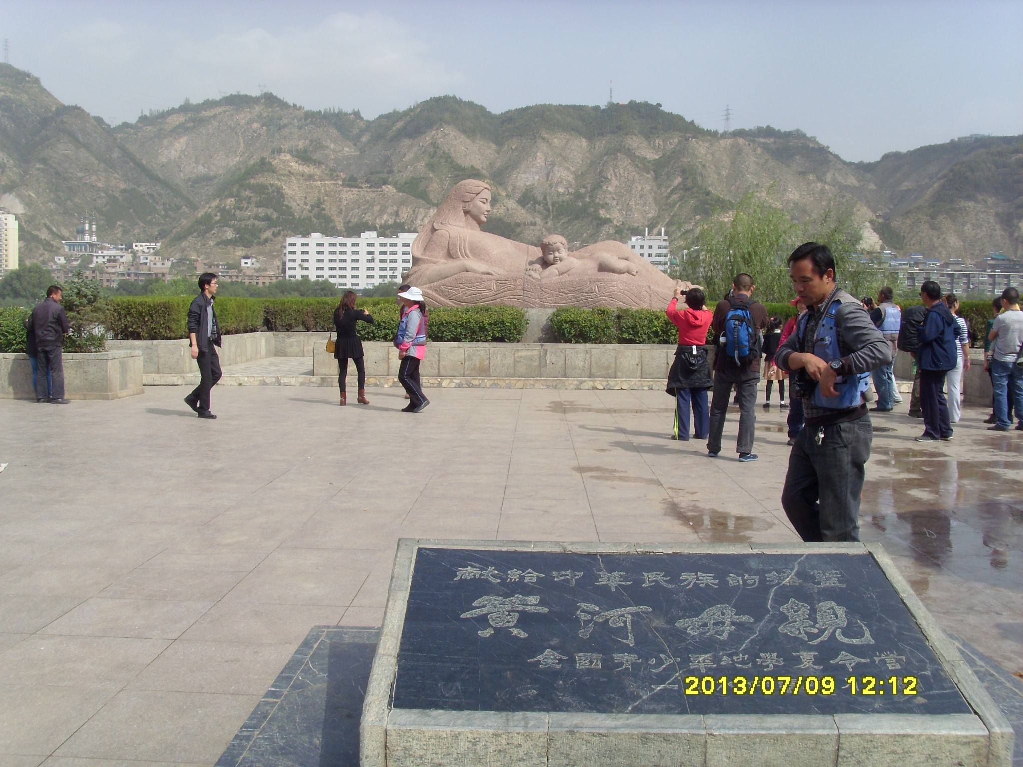 第二站来到西湖公园,穿过西湖公园在黄河岸边有一座黄河母亲雕塑像。在这里拍了照之后沿河漫步而下,来到水车园。水车园需要门票,每人10元,园内有羊皮筏,坐羊皮筏漂流到下游铁桥每人50元,如果往返则每人70元,我们因为要到铁桥玩,只坐单程,不知是不是因为这个原因,筏工师傅态度很不好。这是在兰州接触的当地人中态度最不好的一位。