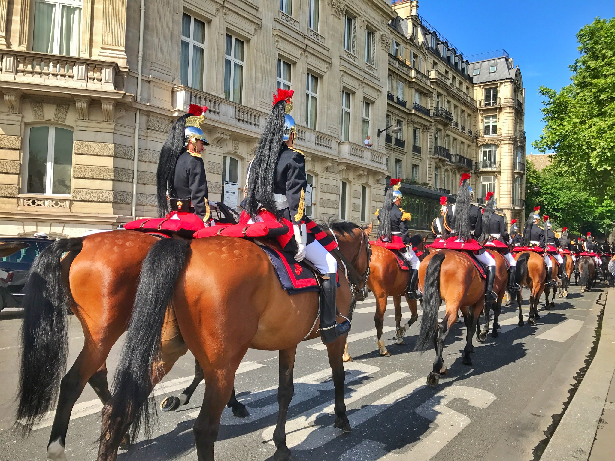 第二天,我兴奋地早早起了床,正在纠结是要去吃千层酥呢还是马卡龙呢,没走几步却被路边面包店新鲜出炉的牛角包吸引了去。不管三七二十一,先买两个路上吃。爱吃的女孩运气都不会太差。(嗯?)一路上还遇见了骑马的护卫队,貌似是有重要人物来访。