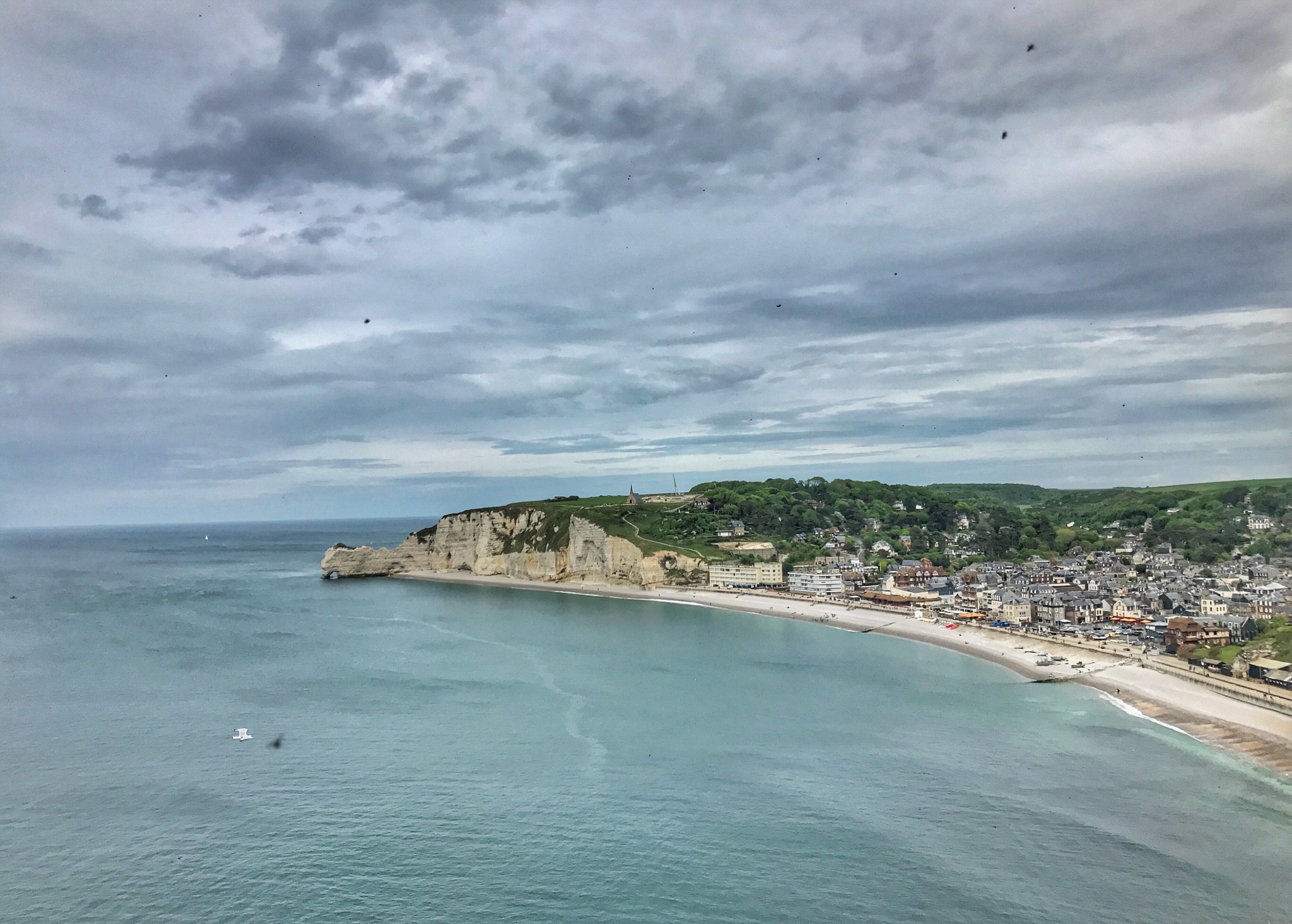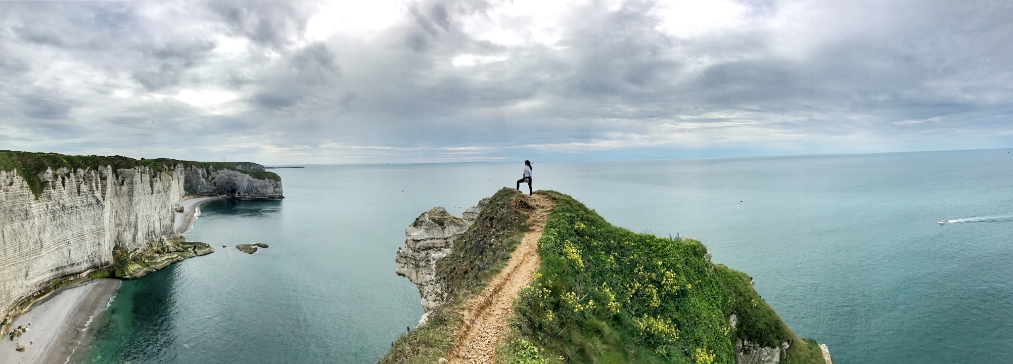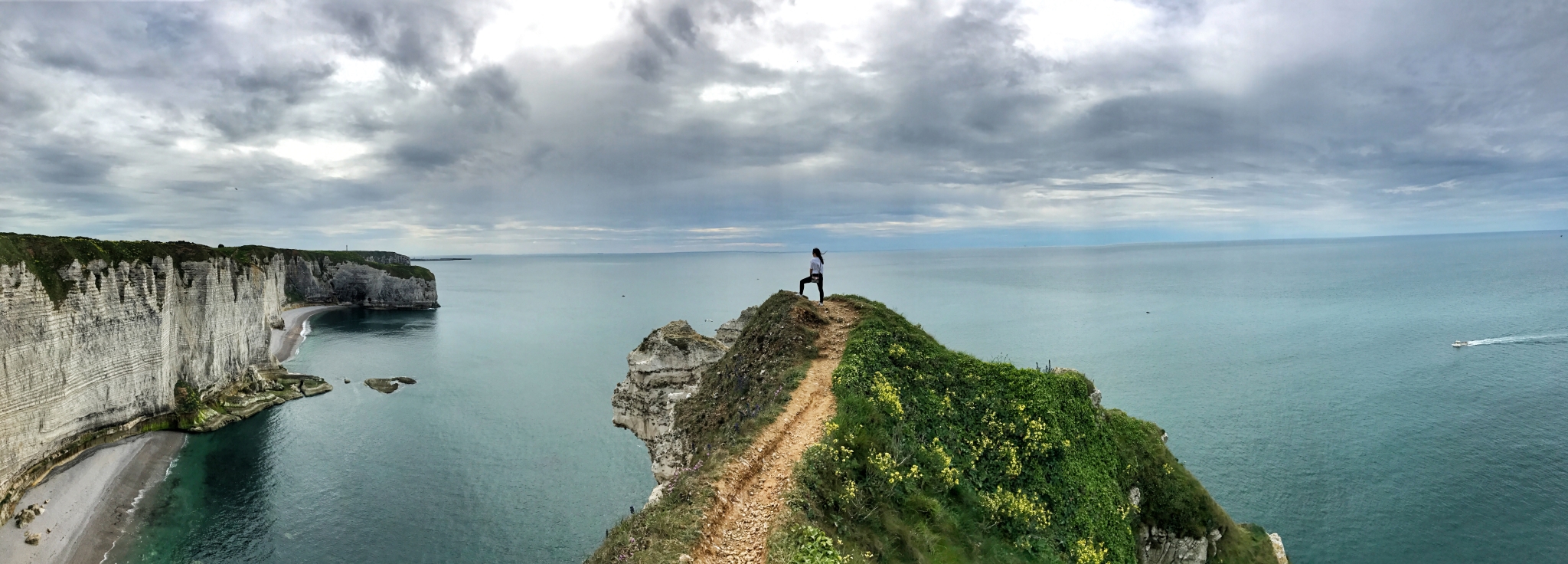 爬上象鼻山顶就能看到Etretat小镇的全貌以及整个海岸线。登上象鼻顶的路窄而危险,没有扶手和防护栏,仅一条小道允许一人通过。可登上了三面环海的象鼻顶,就仿佛站在了大西洋中央。海风的声音无比清晰。