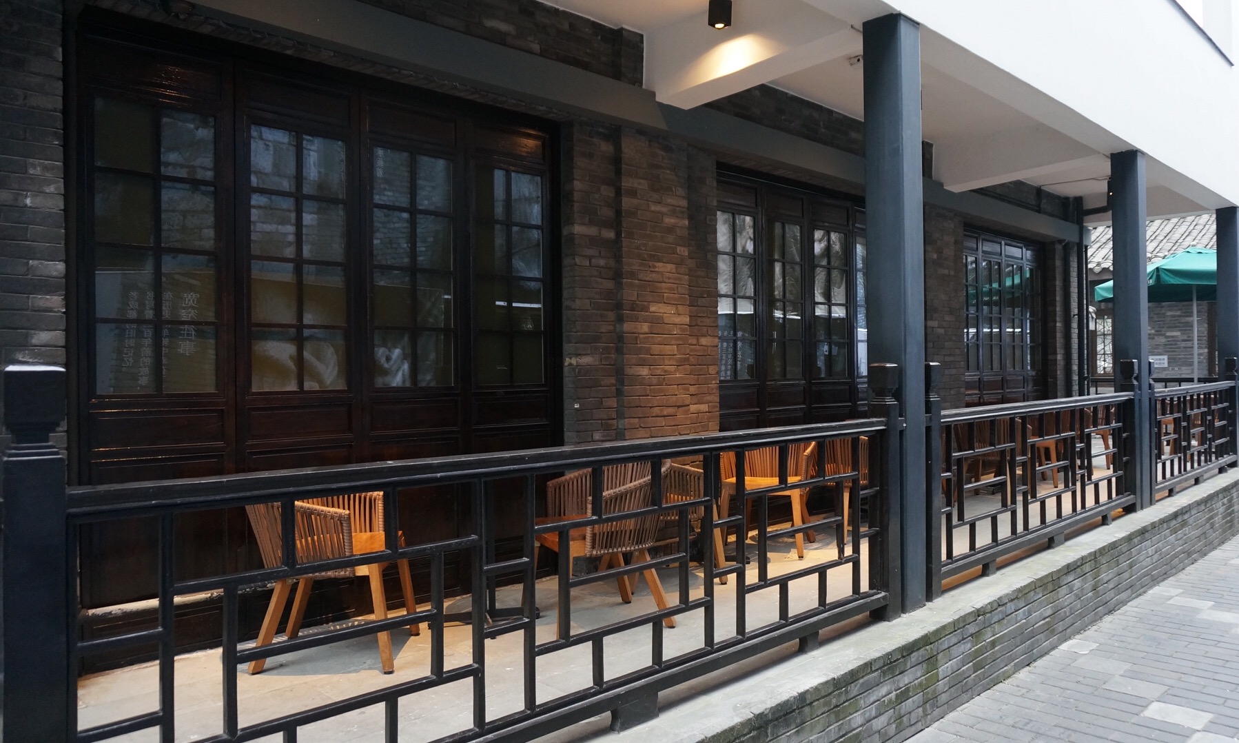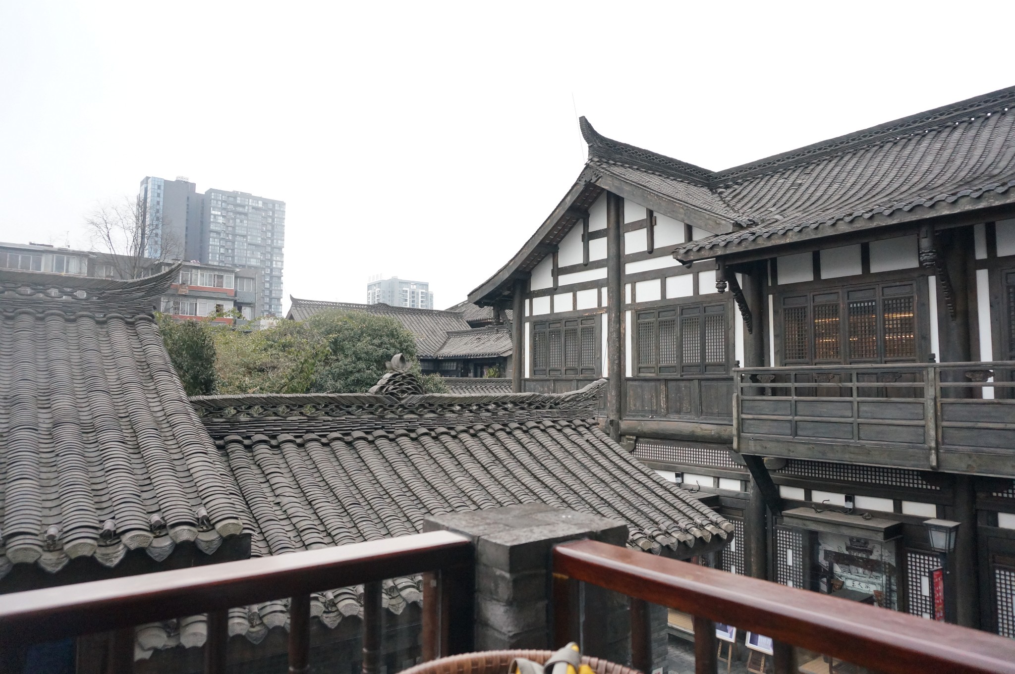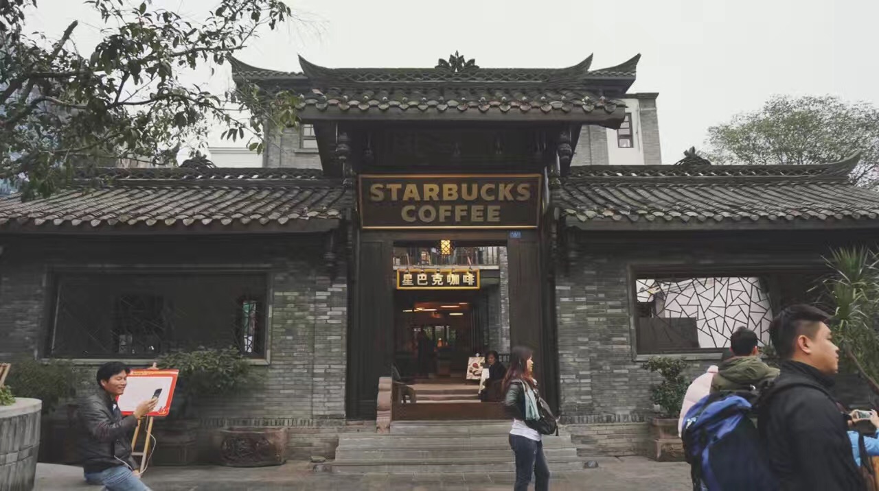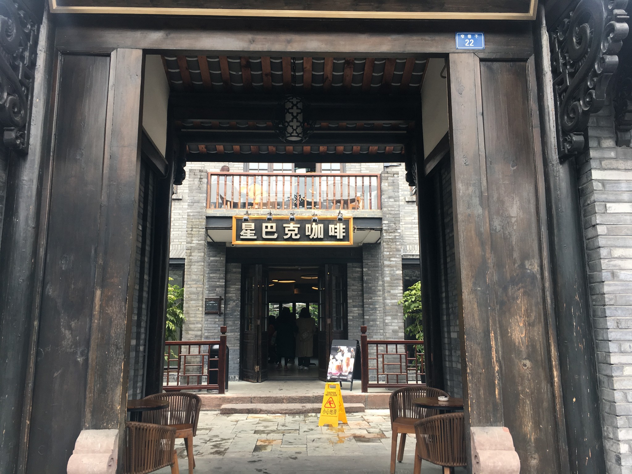 宽窄里面还有一家星巴克很有古建筑的味道,外观跟宽窄旧民居一样,二三楼室外眺台的位置很抢手,大家都喜欢坐室外看看风景、看看人来人往,听听打鼓的民谣歌手唱成都。