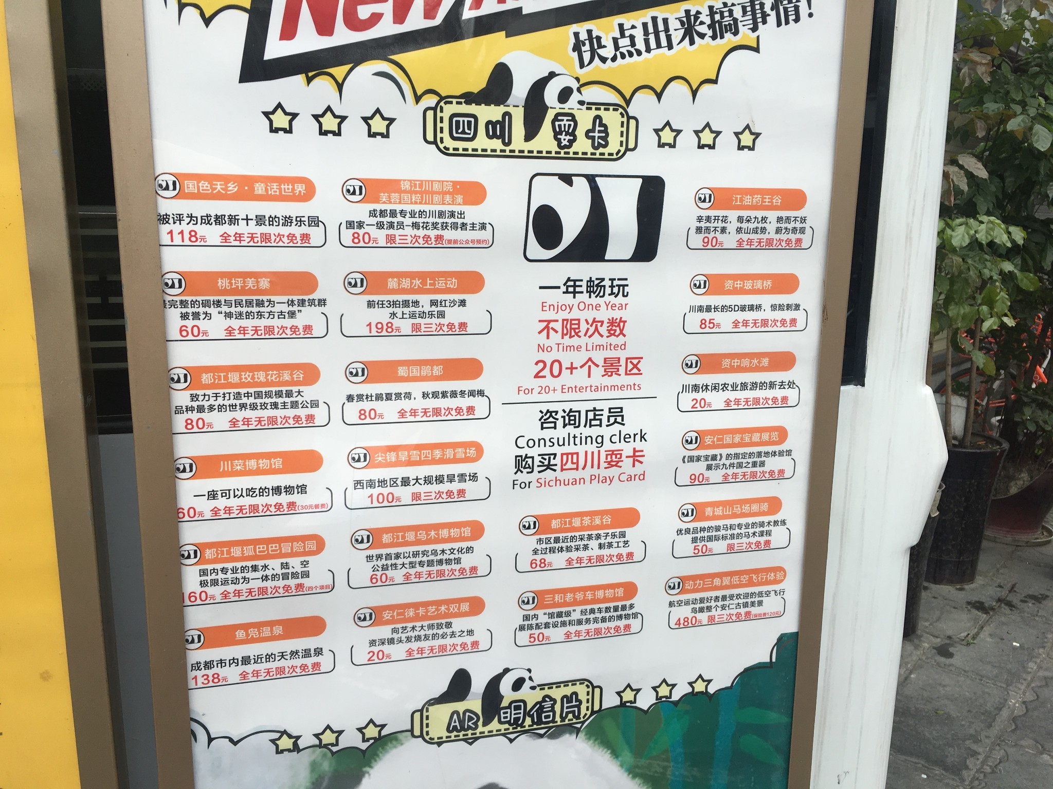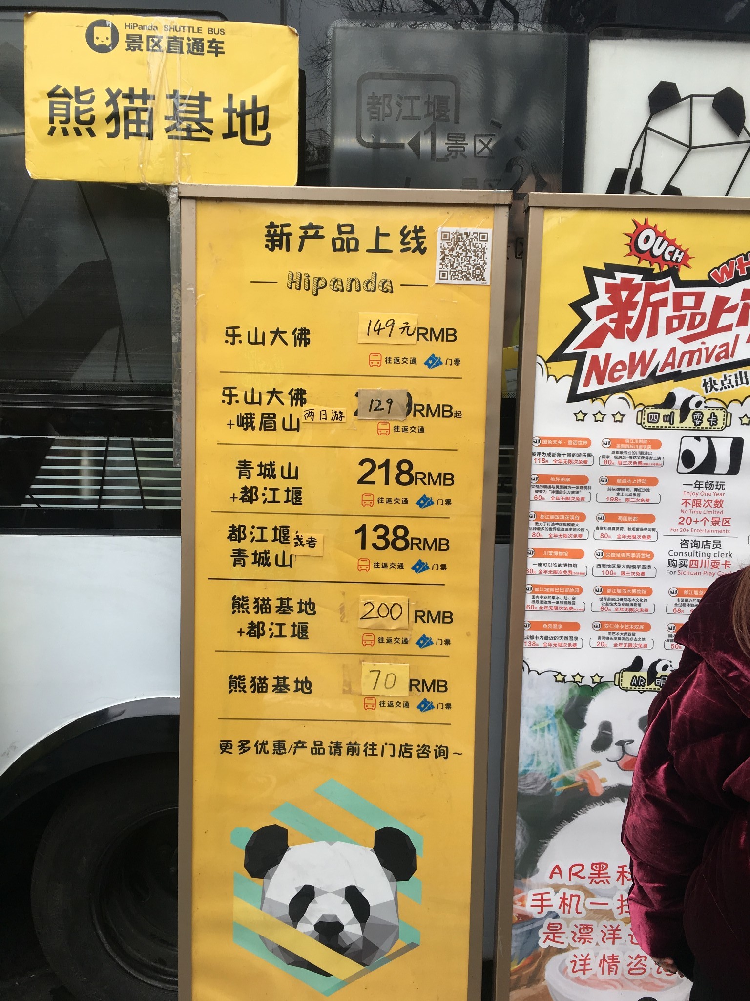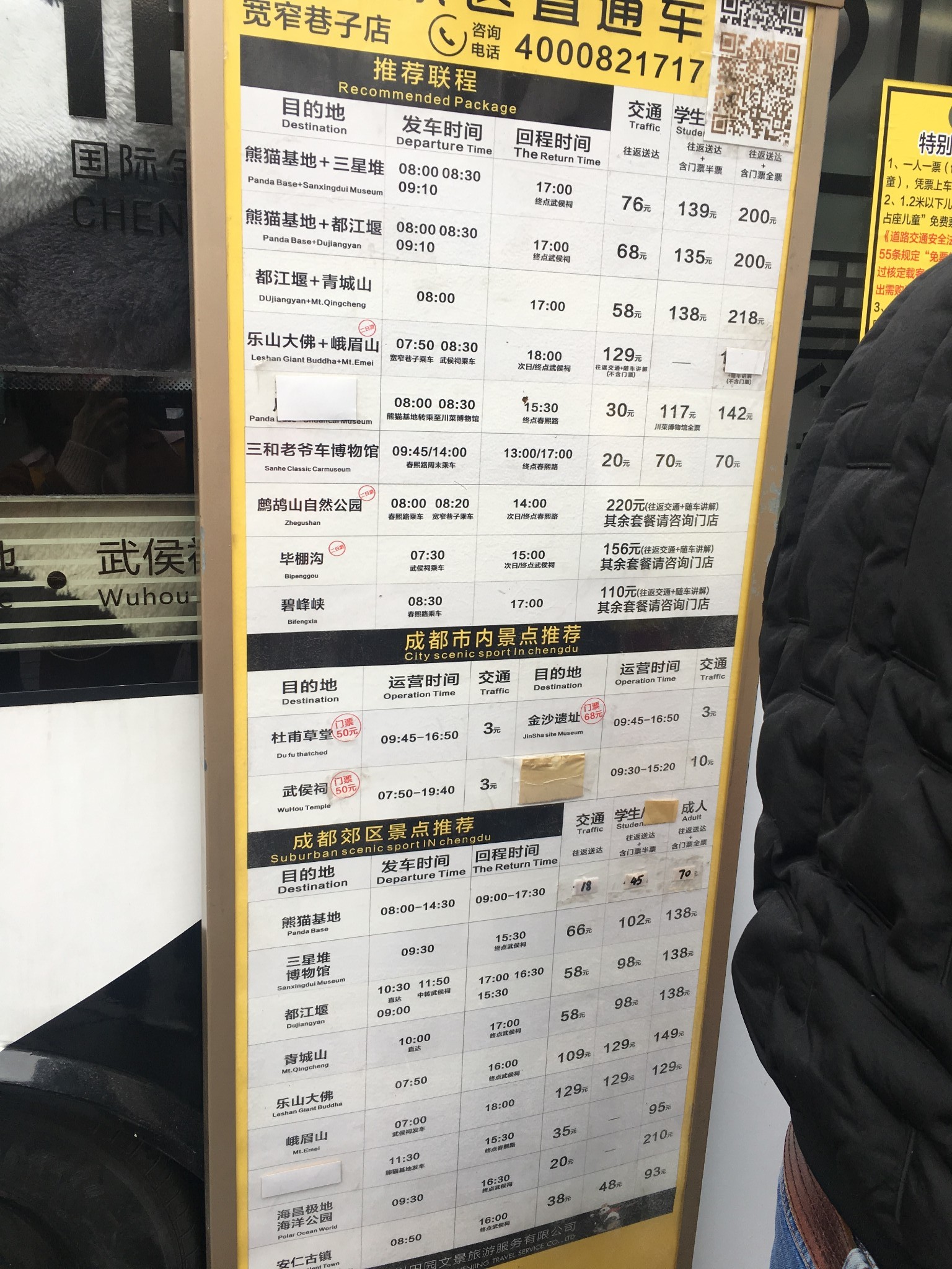 在宽窄巷子正门进会看到一辆印着熊猫的黄色小车,这是成都景点直通车,提供很多成都周边有的线路,他们有公众号:成都景区直通车,想去周边都江堰、青城山、三星堆博物馆、熊猫基地这都有景区直通车,在现场报名或在微信上下单都行,上下车地点有很多个,宽窄巷子是其中一个上下点,很方便。