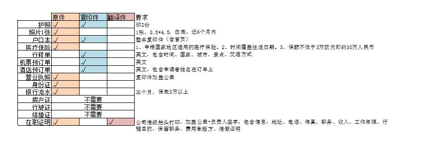 •保险*1份/人:要求英文版,不过现在的保险公司一般来说都是直接做的中英文合并版。3万欧元以上的保额(30万人民币),并足以覆盖全部停留时间及申根国家,上面要有护照号和申请人名字拼音。
