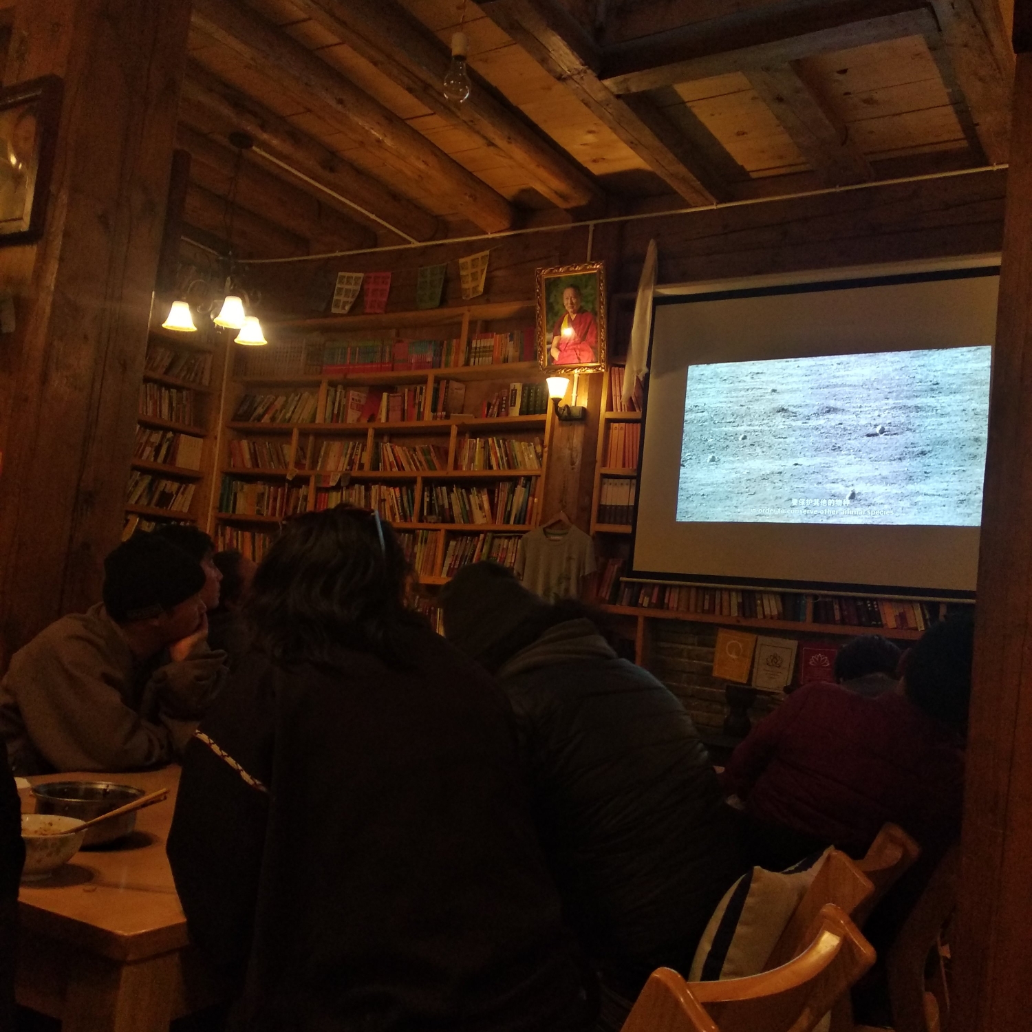 晚间住的客栈是扎琼仓青年客栈,客栈在山上,对于腿脚不便的朋友倒是不太推荐,但是从客栈后门下山,刚好可以到达仓郎木寺寺院四川界的门口,因为是淡季,客栈没什么客人,总数也就住了我们三个人,晚间在客栈独有的图书馆,大家聊天喝茶,很温暖很开心。