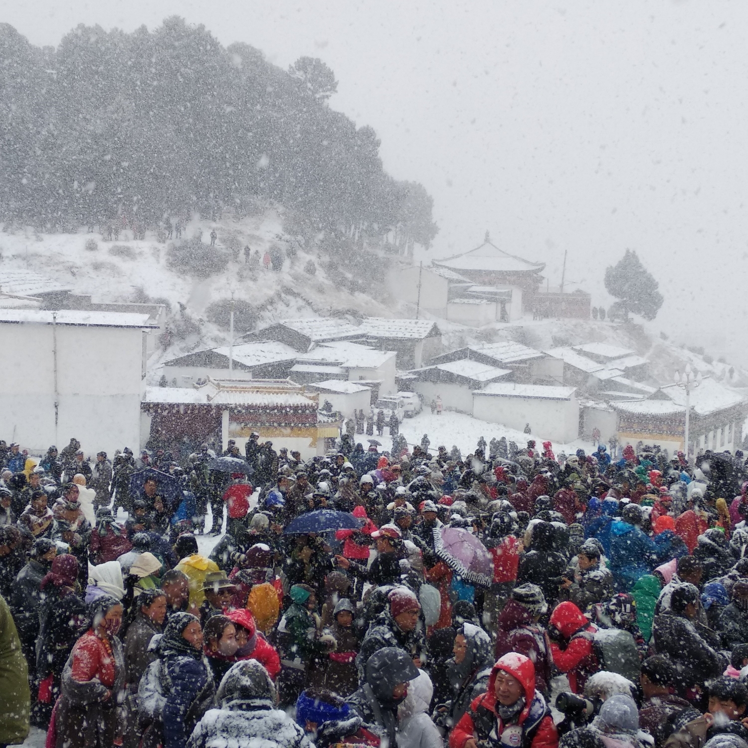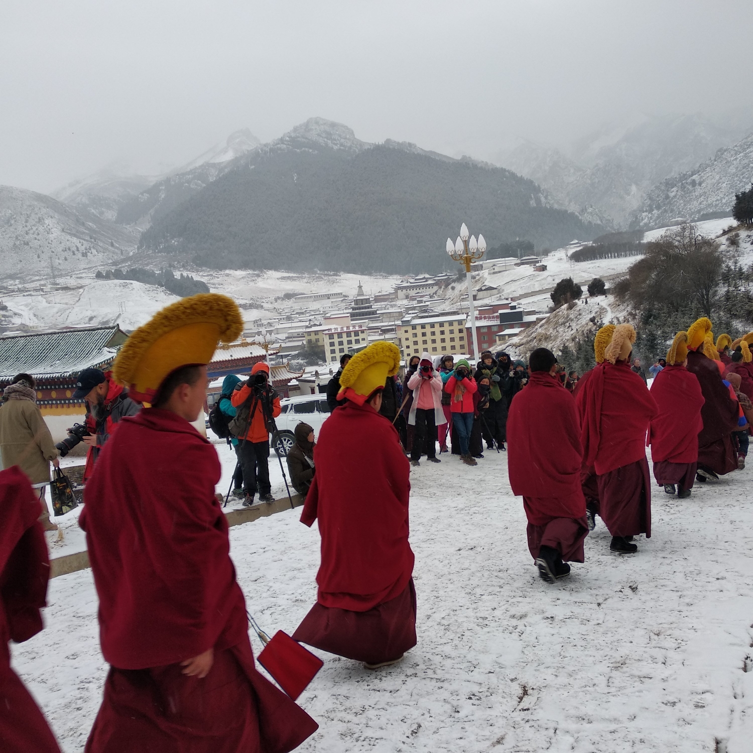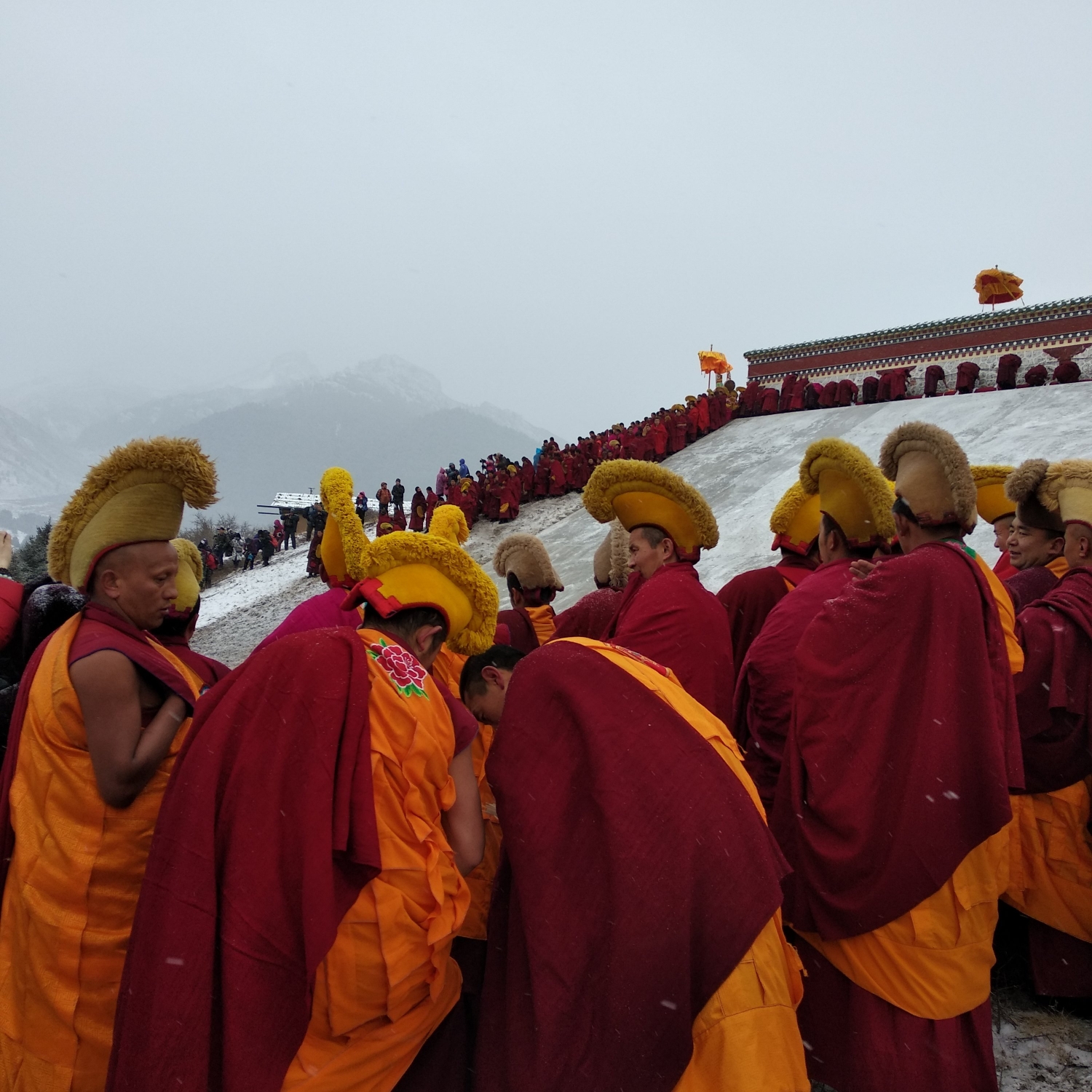 展佛活动长达四十分钟,活动结束后,人们都变成了雪人哈哈哈哈哈,真的是有点可爱呢。