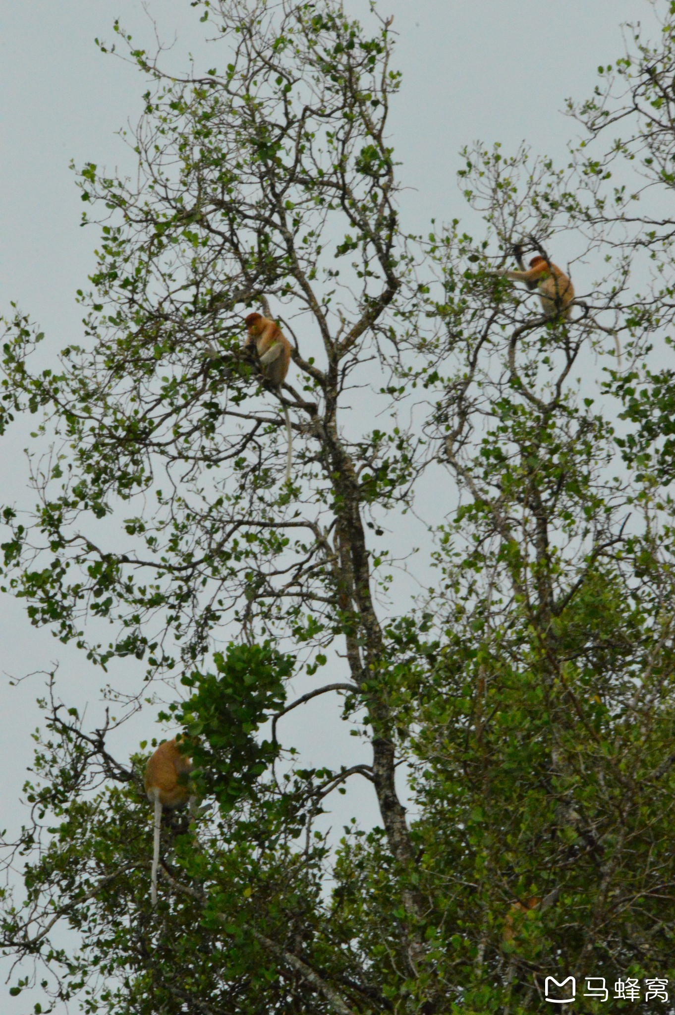 吃过下午茶开车几分钟就到了河边乘坐快艇去寻找长鼻猴,因为我之前有看很多人的功率都说没有看到,所以本来也没有报太大希望,不过没想到我们正好看到一群长鼻猴在河边的树上吃树叶,后来还看到了蓝色的翠鸟。
