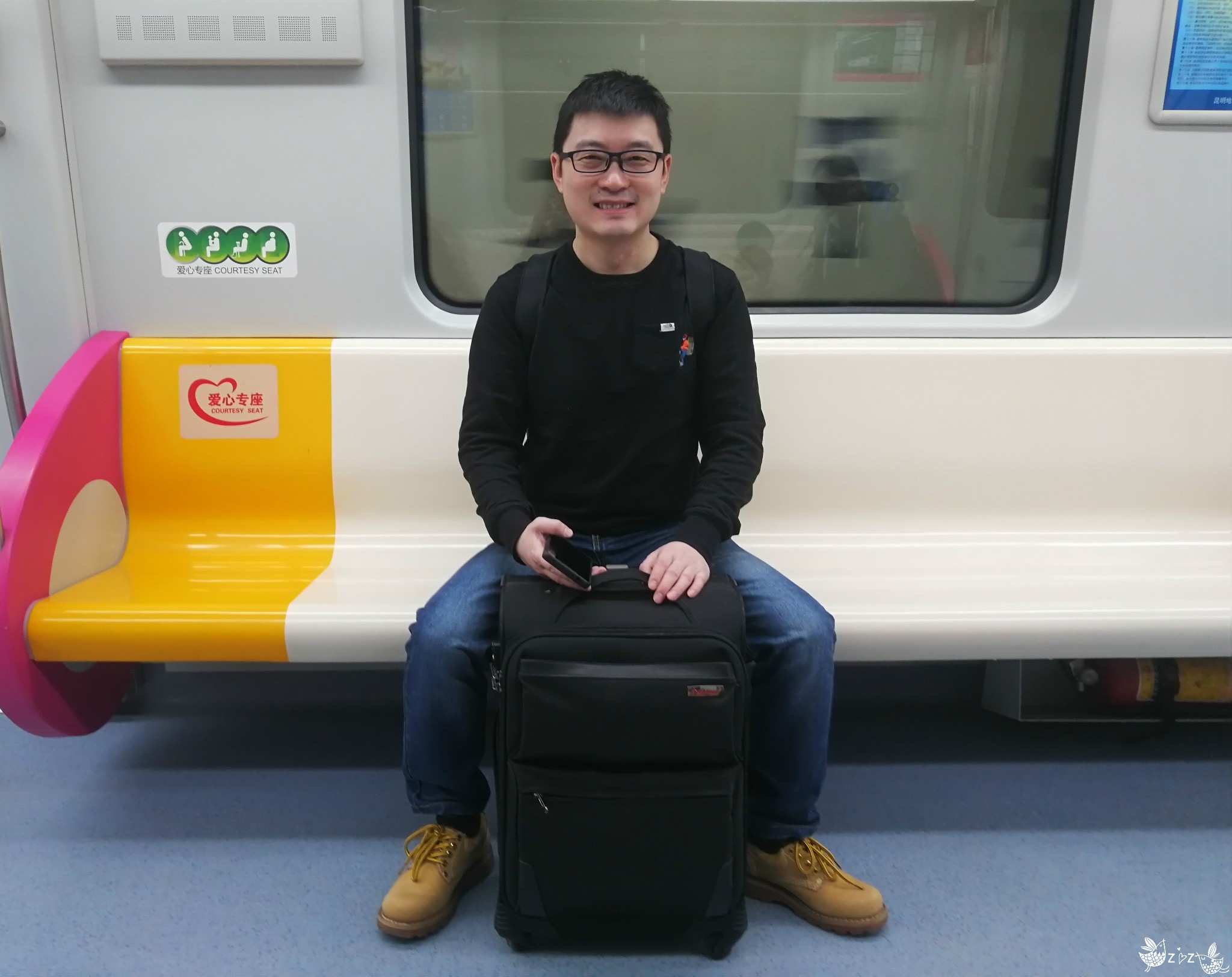 昆明长水机场到市区的地铁,人很少,赞。