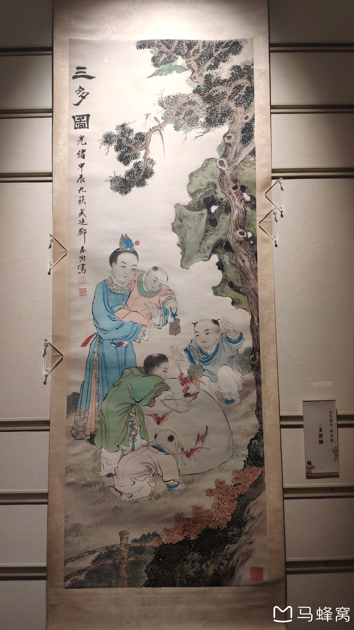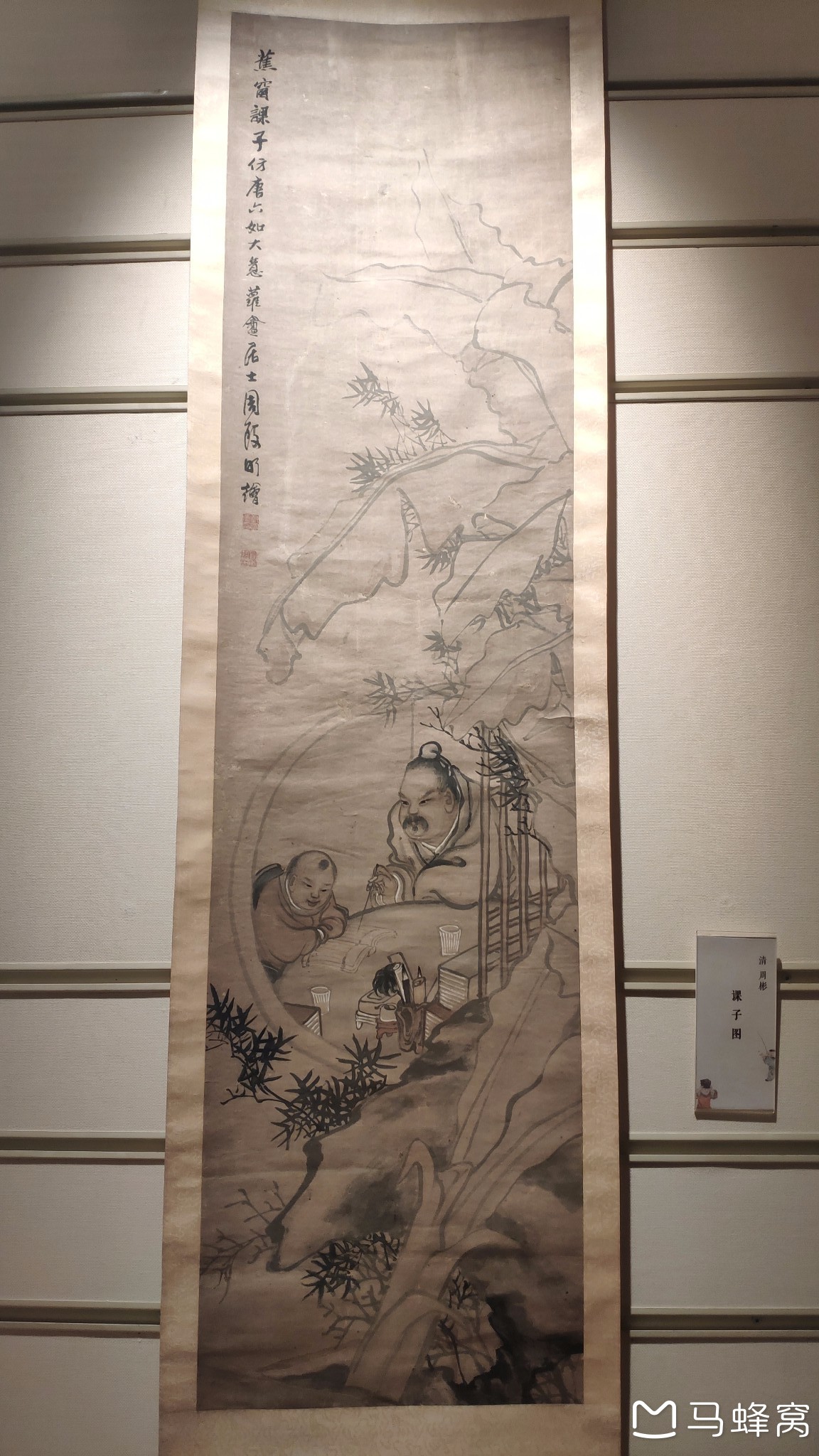 常州博物馆有一点,就是打给画作的灯光非常充分,也不知道是为什么,所以这次参观拍摄的画作颇多。在其他博物馆,往往因为不能打闪光,无法拍摄清晰而放弃。下面这张图颇为有趣,画的是小儿在学堂内嬉戏。或许是午后吧,先生不知为何已经昏昏睡去,一群小孩子顿时翻了天,追逐打闹,模仿君臣行礼等等。但还有左上一位,依旧认真写字。不知日后此人终究是出人头地还是成了书呆子?又不知,此刻先生突然醒来,又当如何?