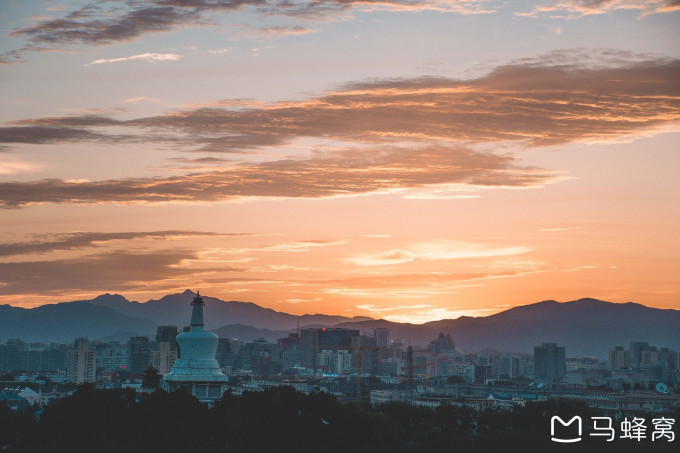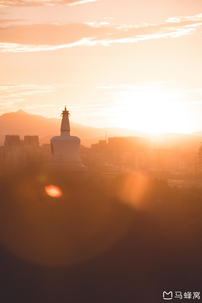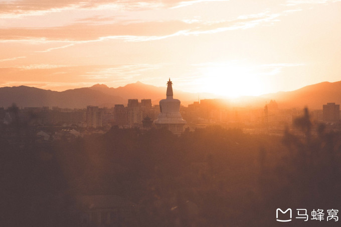 我喜欢在晴天的傍晚去跑步,先在北海公园里面绕一圈,等太阳快要落山的时候跑去景山公园。在万春亭下停歇休息,等太阳落下。