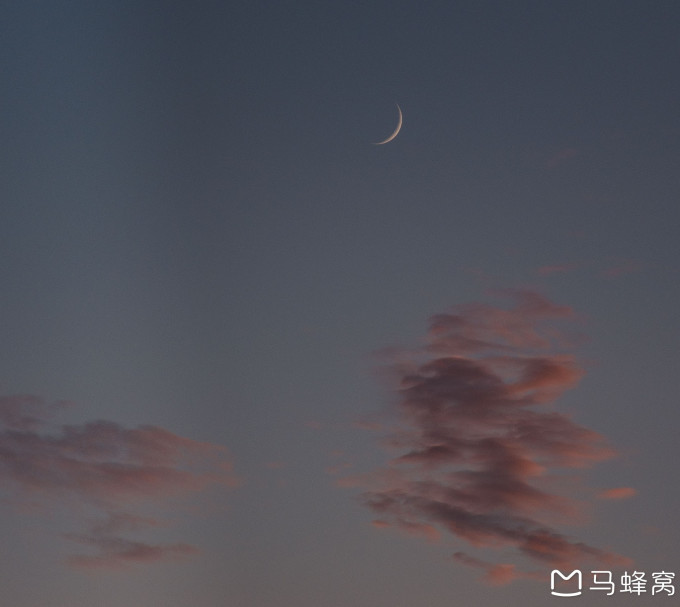 一轮残月挂在天边,城市的灯火已经点亮。
