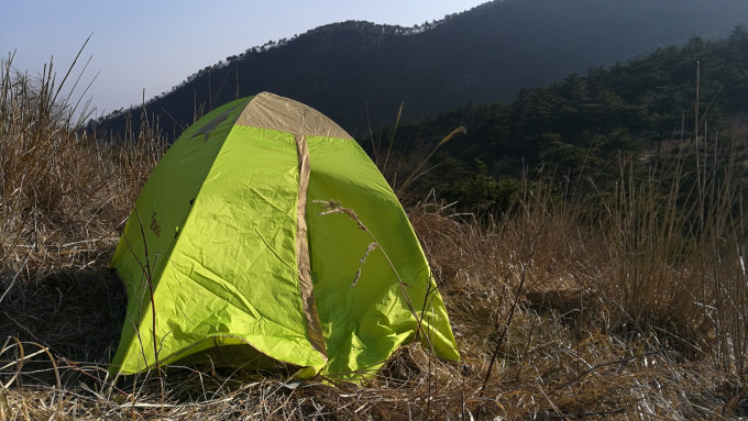 过了太子尖,走了三小时,七点左右天正式黑了。本来想一路赶到百丈岭营地过夜,但天黑后体力有点跟不上。黑夜行走,对体力和判断力都是一大考验,再加上安全考虑,所以选了一个山凹的平地露营。此时已经是晚上八点。