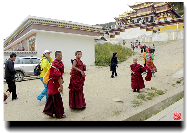 中间那个小喇嘛发现被远距离拍照,恶狠狠瞅了一眼——阿弥陀佛。据说拍照不能白拍,要给银子的。