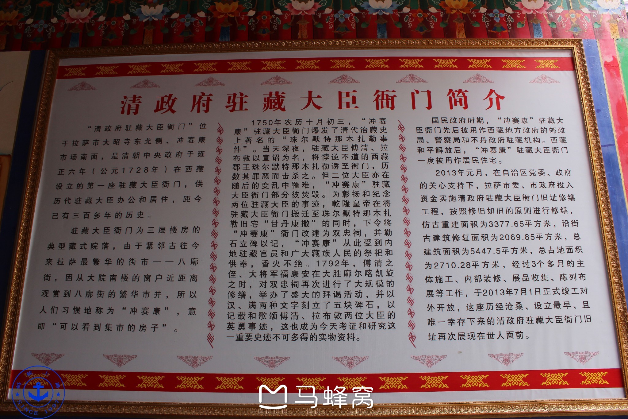 清政府驻藏大臣衙门,位于大昭寺东北侧,冲赛康市场南面,是清朝中央政府于雍正六年(1728年)在西藏设立的第一座驻藏大臣衙门,供历代驻藏大臣办公和居住,距今已有300多年的历史。其中,1750年农历十月初三,著名的“珠尔默特那木扎勒事件”就发生在这儿,当天深夜,驻藏大臣傅清,拉布敦以宣召为名,将悖逆不道的西藏郡王“珠尔默特那木扎勒”诱至衙门并诛杀之,但二位大臣也在随后的变乱中遇难,衙门也被部分焚毁。后来乾隆皇帝将驻藏大臣衙门搬迁移至别处后,下令将此地改建为双忠祠,并勒石立碑以记。