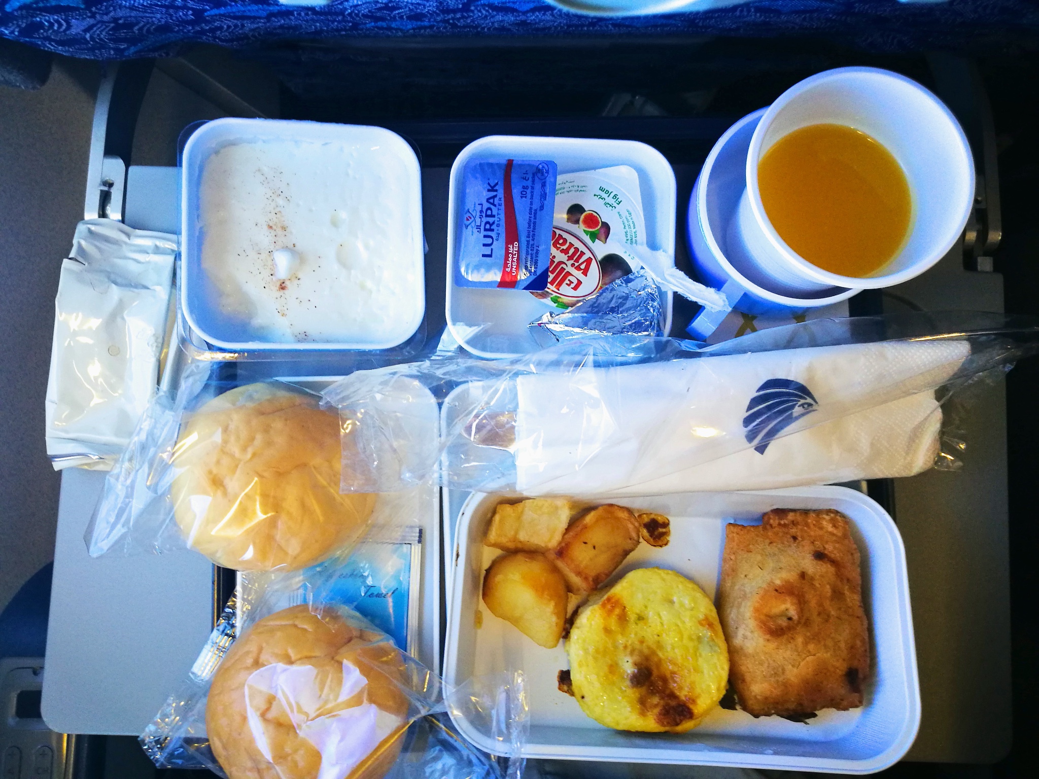埃及航空评价:起飞和降落都很平稳;娱乐节目太少,没什么可看的,全程以睡为主。经济舱位置空间还行,不会觉得很憋;餐食一般般;饭后红茶很好喝。飞机起飞前48小时之内,可以在手机和官网提前值机,所以能选到很好的座位。
