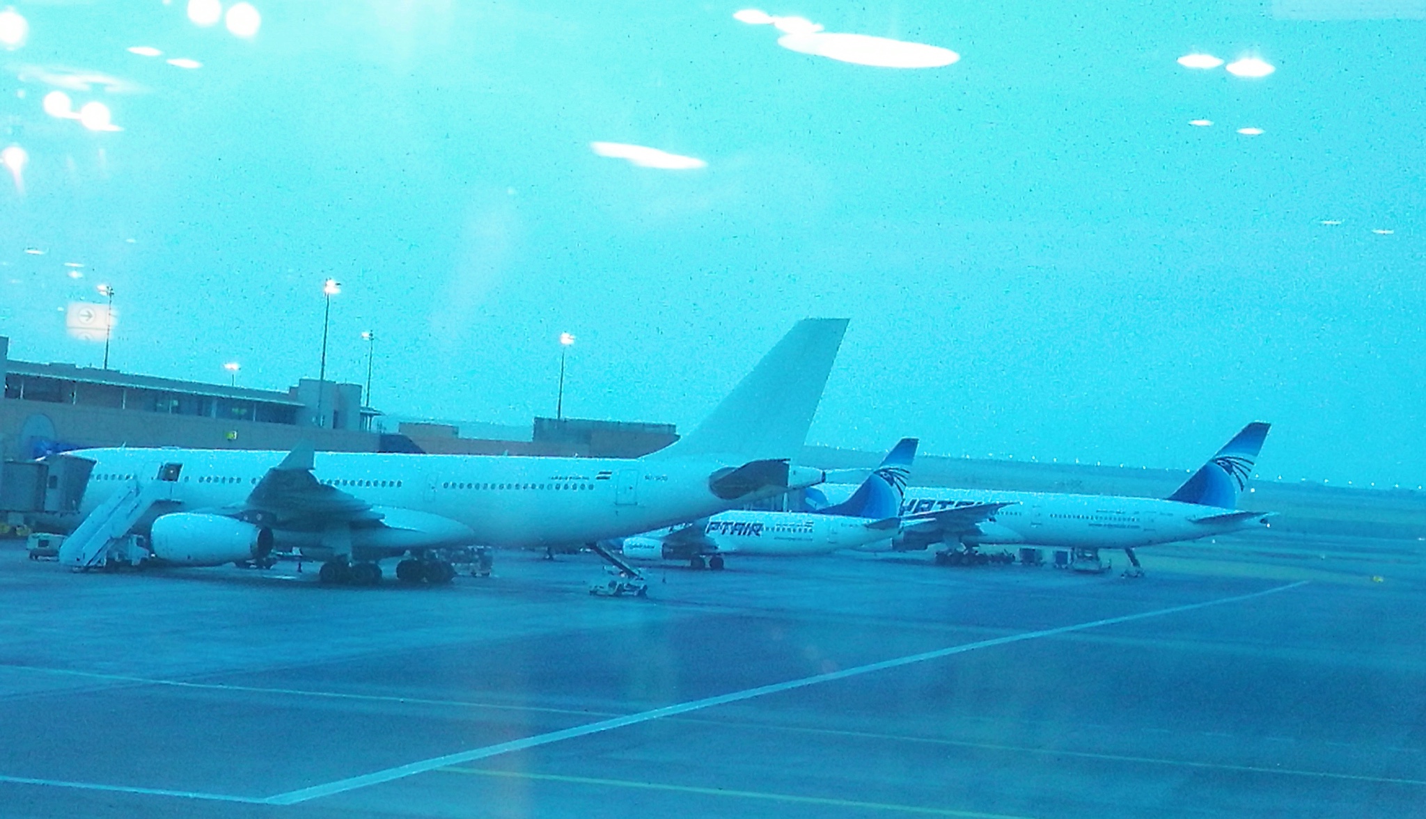 开罗机场不是很大,到的时候凌晨4点,没多少人,免税店很少很贵,没有可买性。重点是全机场不提供饮用水,买到的也是冷水。也没有任何吸烟区,所以老公难得那么长时间没抽烟,和我一起发呆,无聊到爆,如果开罗转机的得自己带点乐子来。